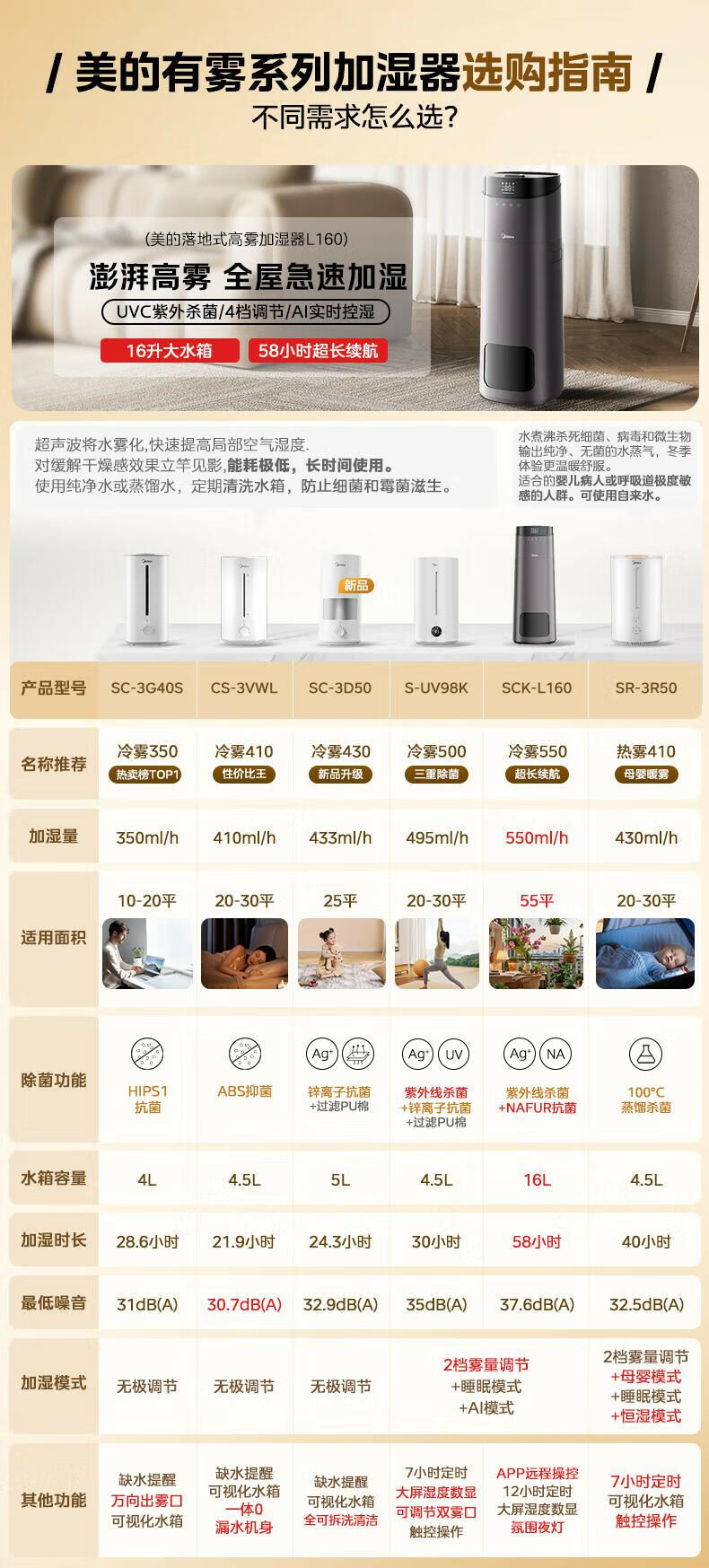 美的(Midea)加湿器空气净化器一体鼻炎家用卧室客厅孕妇婴幼儿静音除菌喷雾器桌面小型工业迷你雾化器SC-3G40S