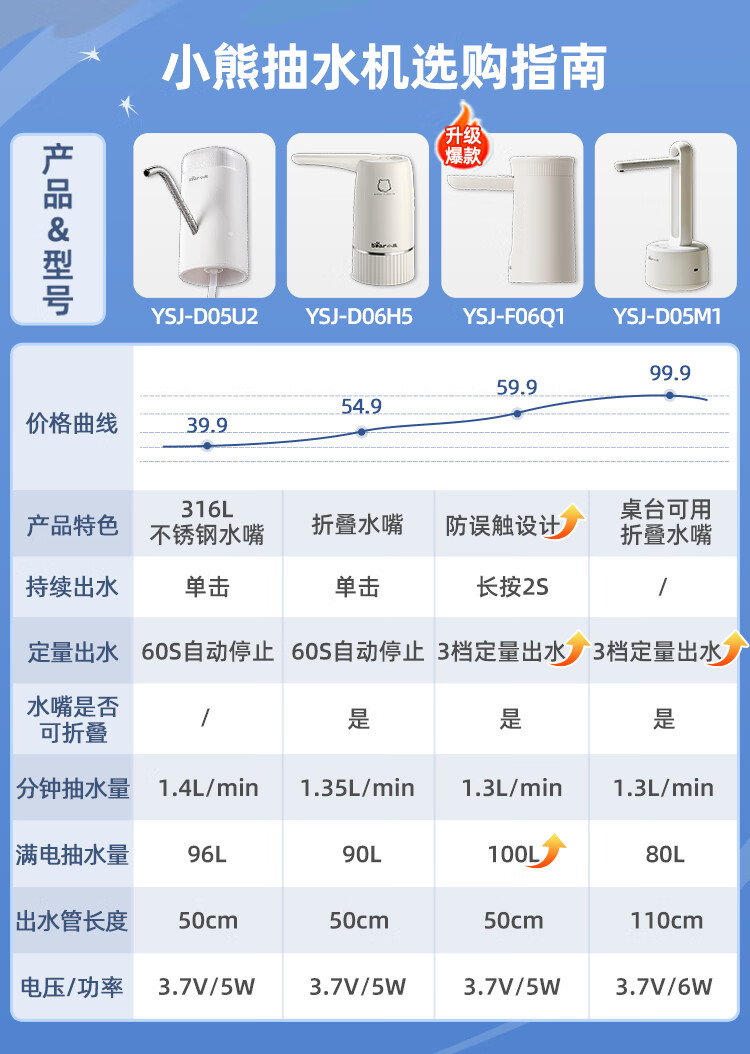 小熊(Bear)桶装水抽水器 电动压水器 自动吸水器 矿泉水上水器 饮水机抽水神器抽水泵 YSJ-D06H5