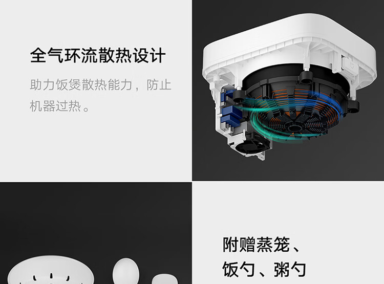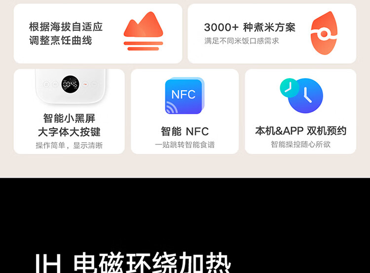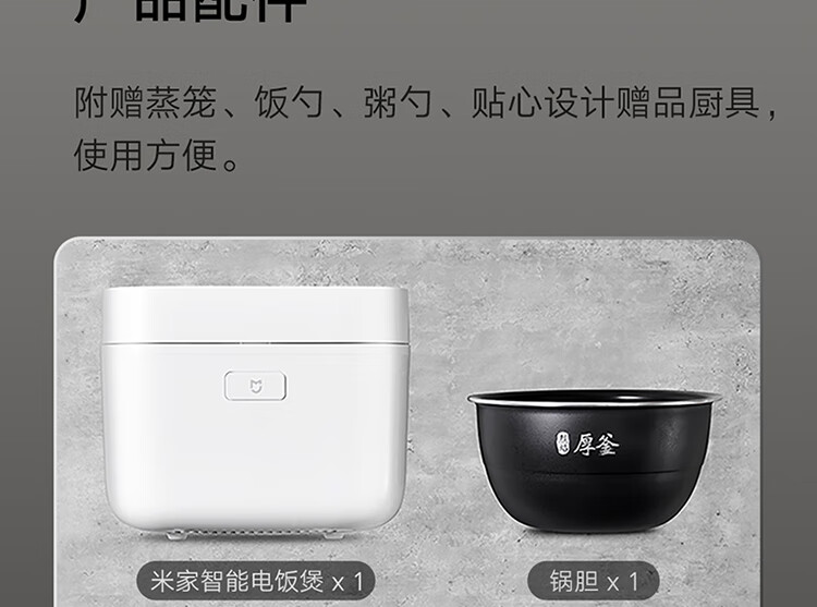 米家小米电饭煲家用2-3人 智能微压IH多功能电饭锅煮饭 厚釜内胆不粘锅一级能效带蒸笼3升