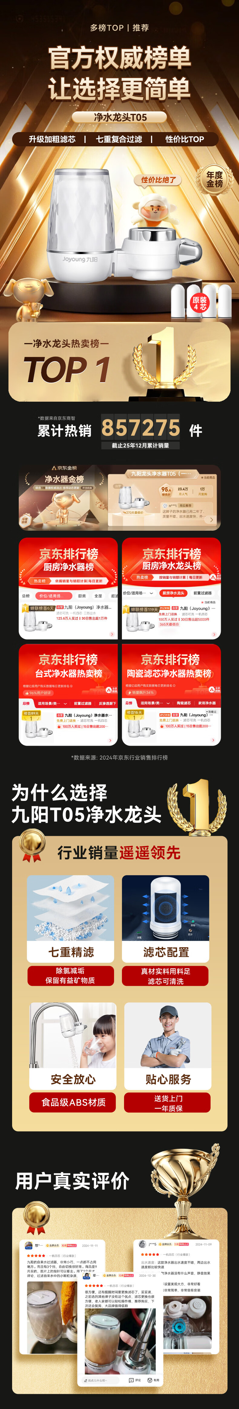 九阳(Joyoung)水龙头净水器去除余氯净化水质可视化可清洗滤芯一机四芯JYW-T05