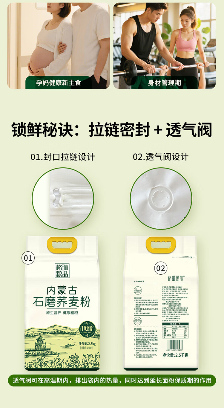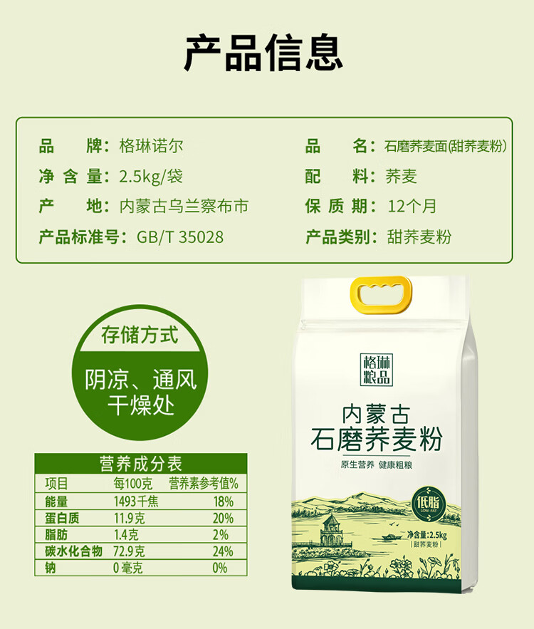 格琳诺尔石磨荞麦面粉5斤 纯荞麦面 粗粮 杂粮面粉 早餐
