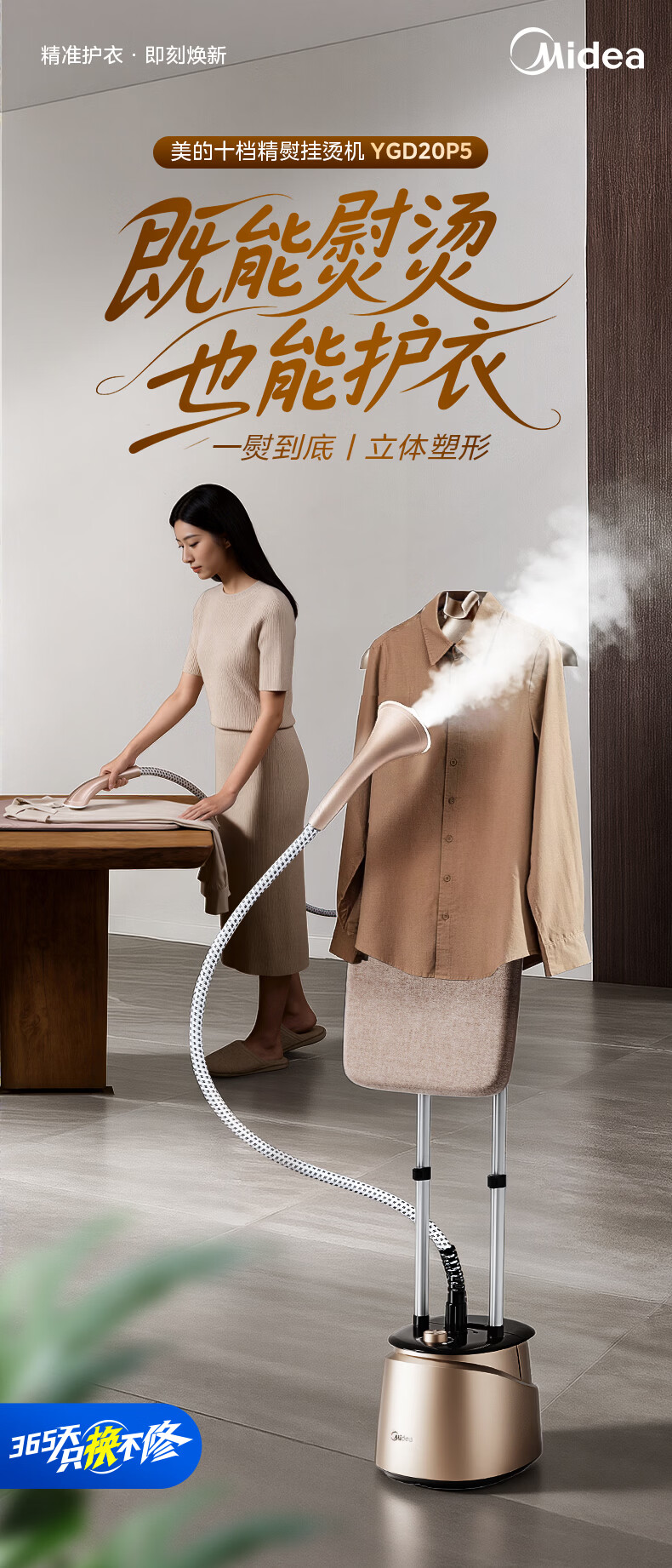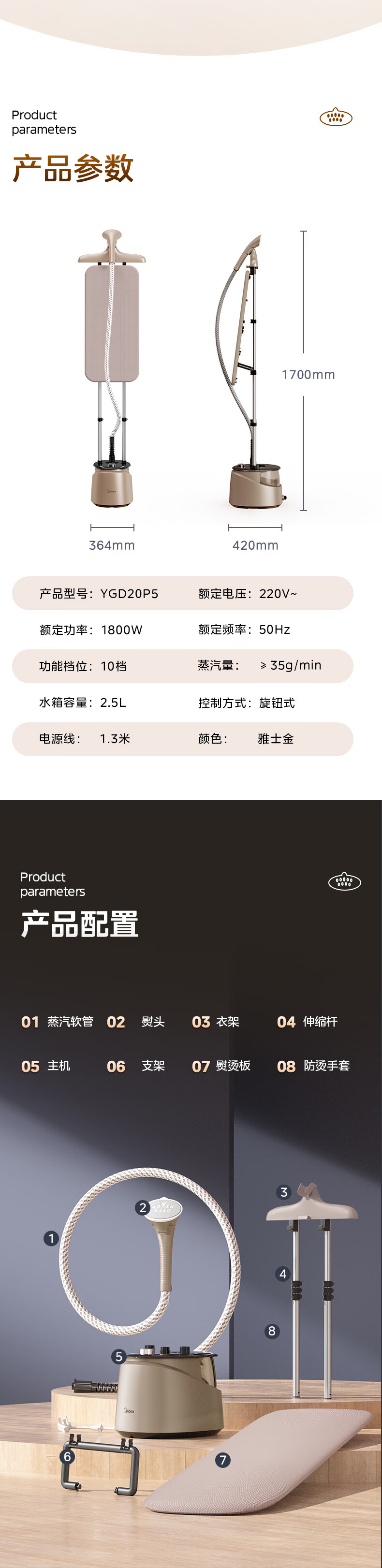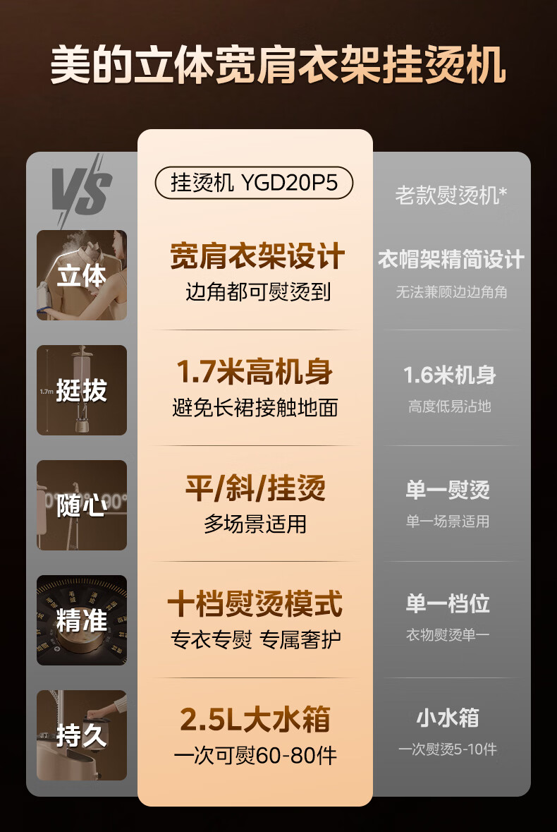美的(Midea)【10档精熨】立式挂烫机/熨烫机35g/min大蒸汽2.5L水箱家用烫衣服商用服装店专用团购礼物YGD20P5