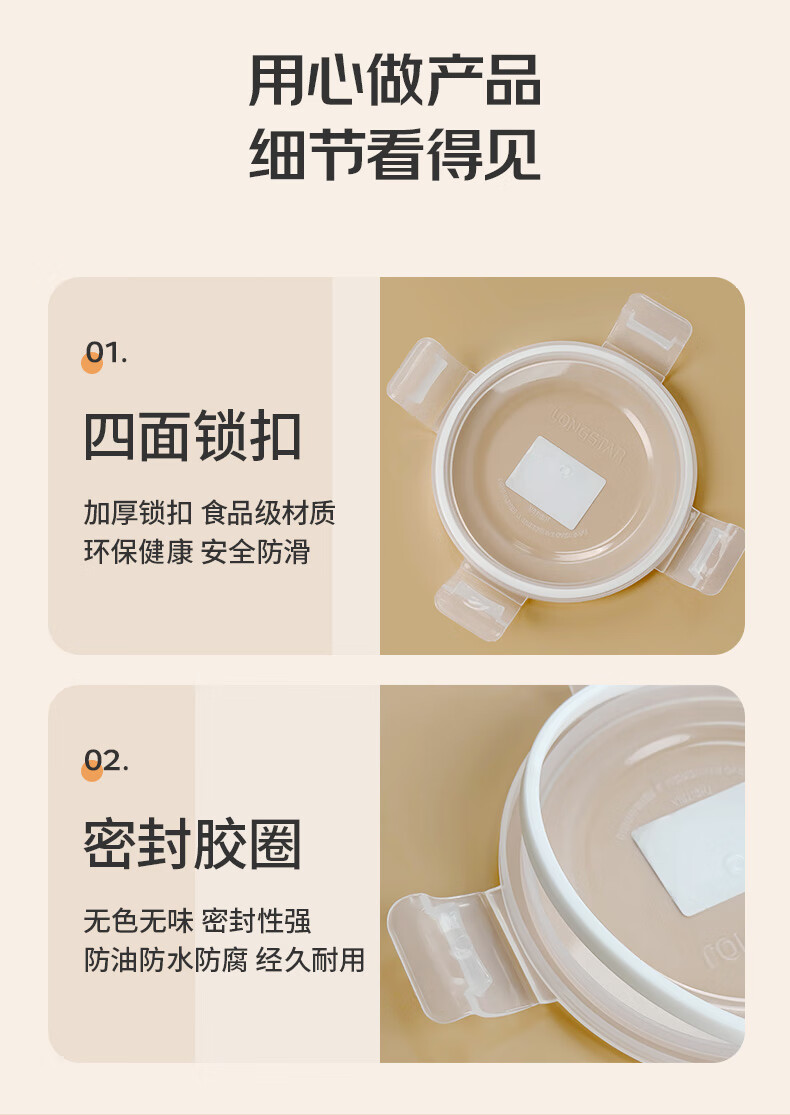 龙士达食品级饭盒 微波炉专用可加热密封保鲜盒 便当盒上