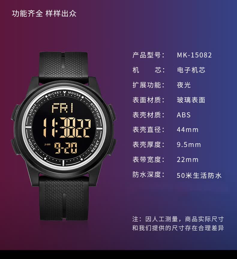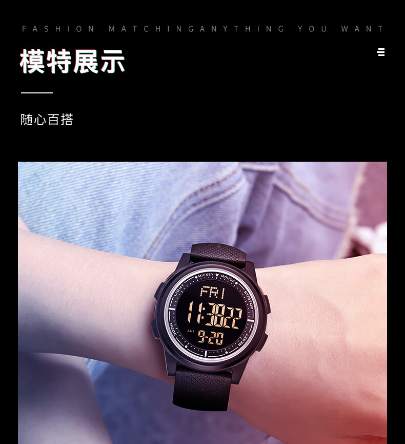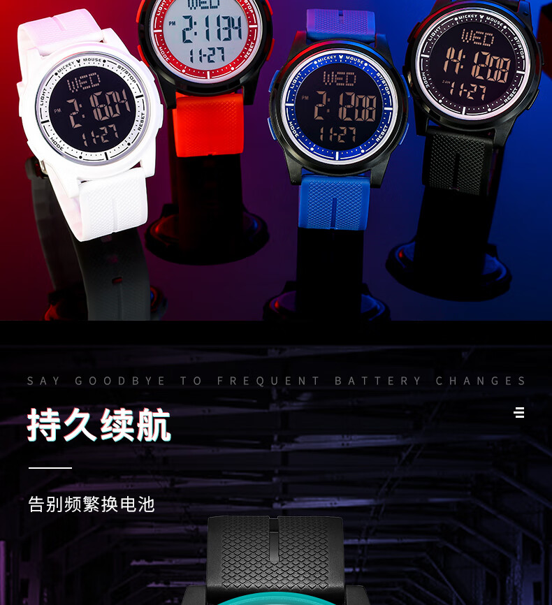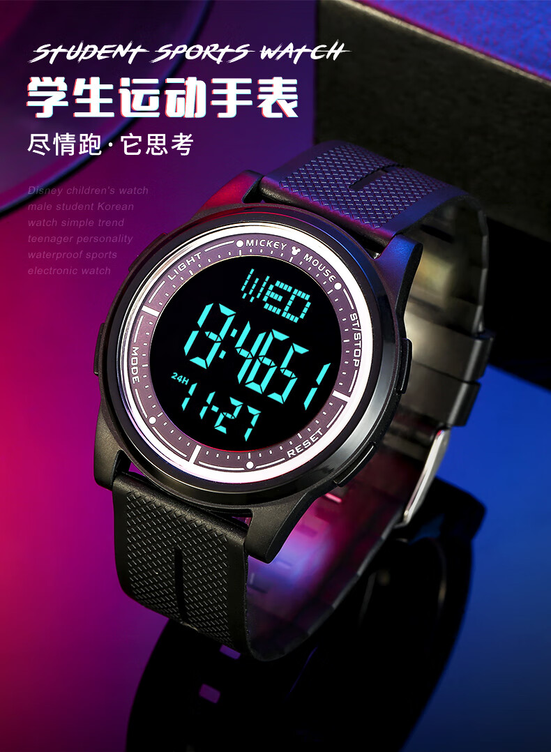 迪士尼(Disney)手表男学生潮流防水青少年初高中生男孩电子表多功能运动手表礼盒