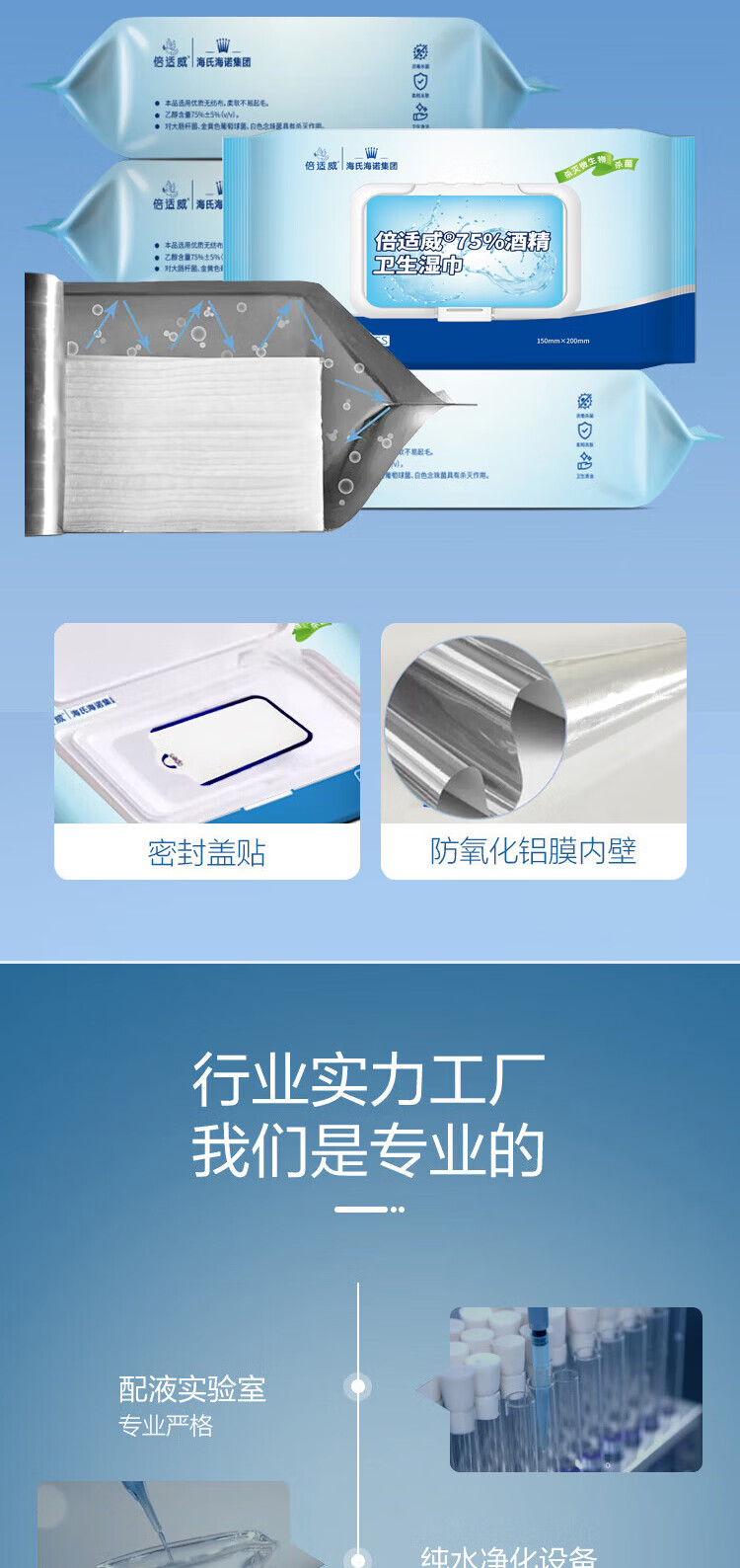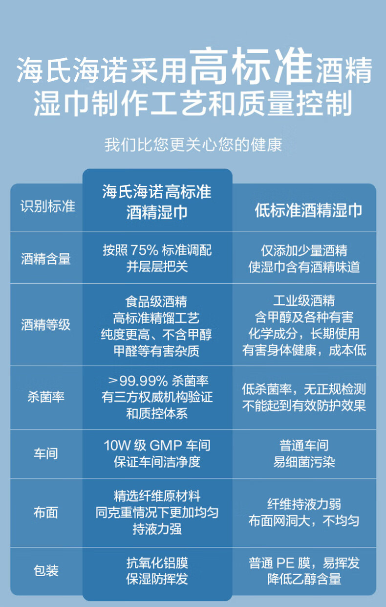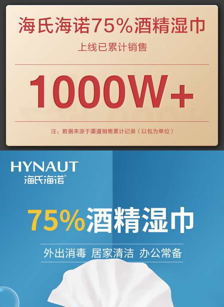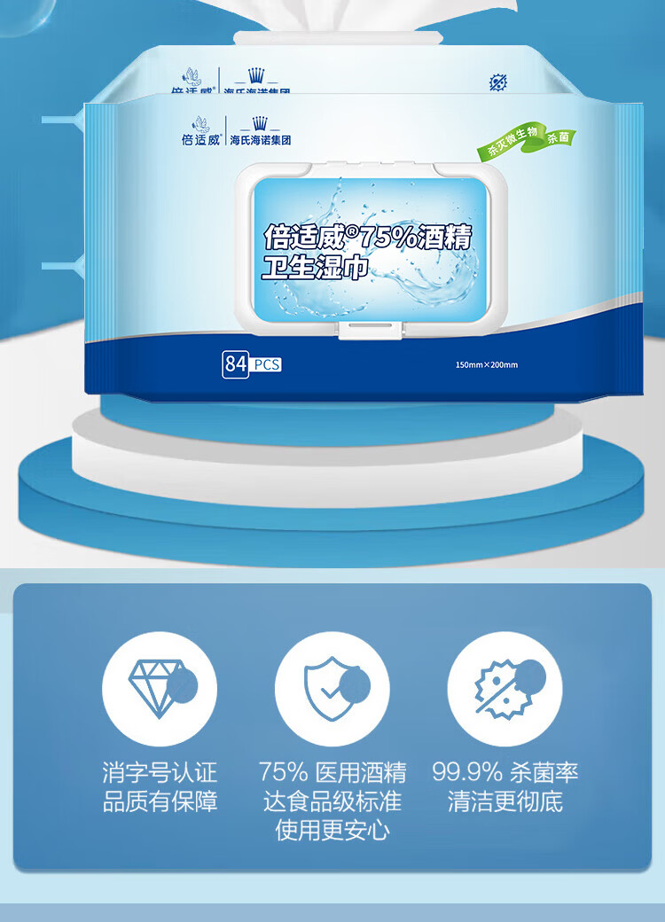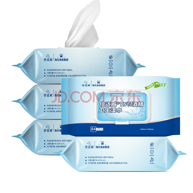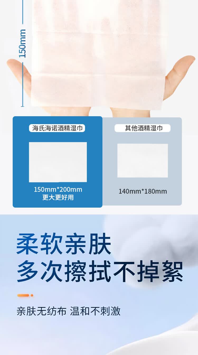 海氏海诺75%酒精卫生湿巾大包大尺寸杀菌湿巾消毒棉片湿巾99.9%杀菌*5包