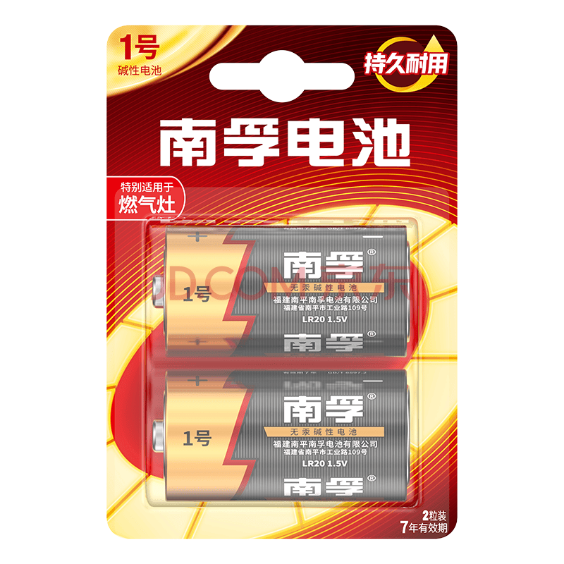 南孚1号碱性电池2粒 大号D型电池 适用于热水器/煤气燃气灶/手电筒/电子琴/挂钟等 LR20-2B