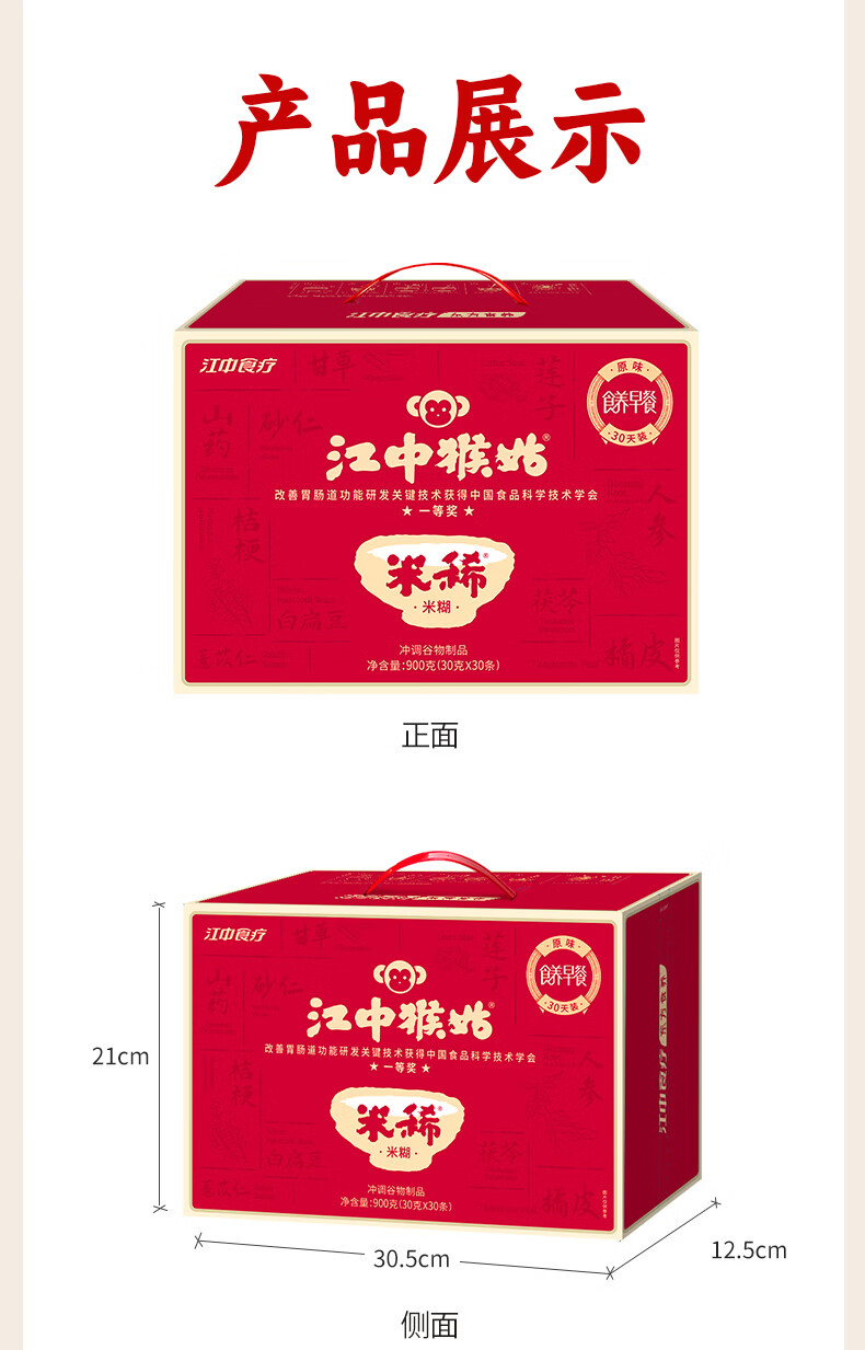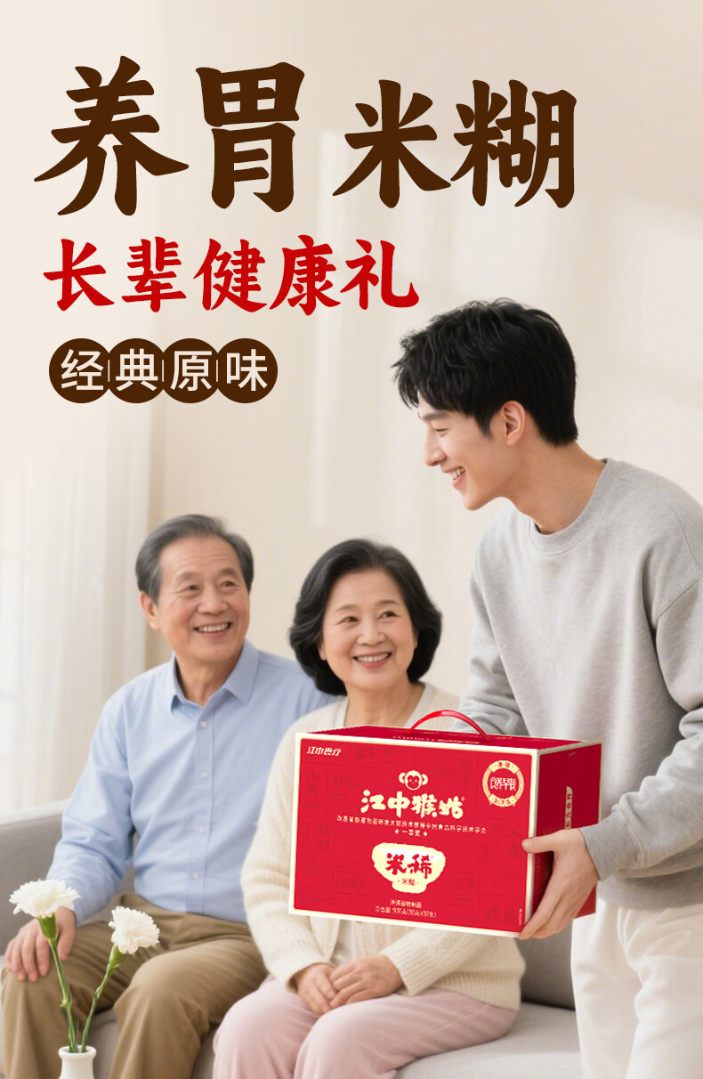 江中猴姑米稀原味米糊30天猴头菇养胃粉早餐老年人营养品礼盒900g