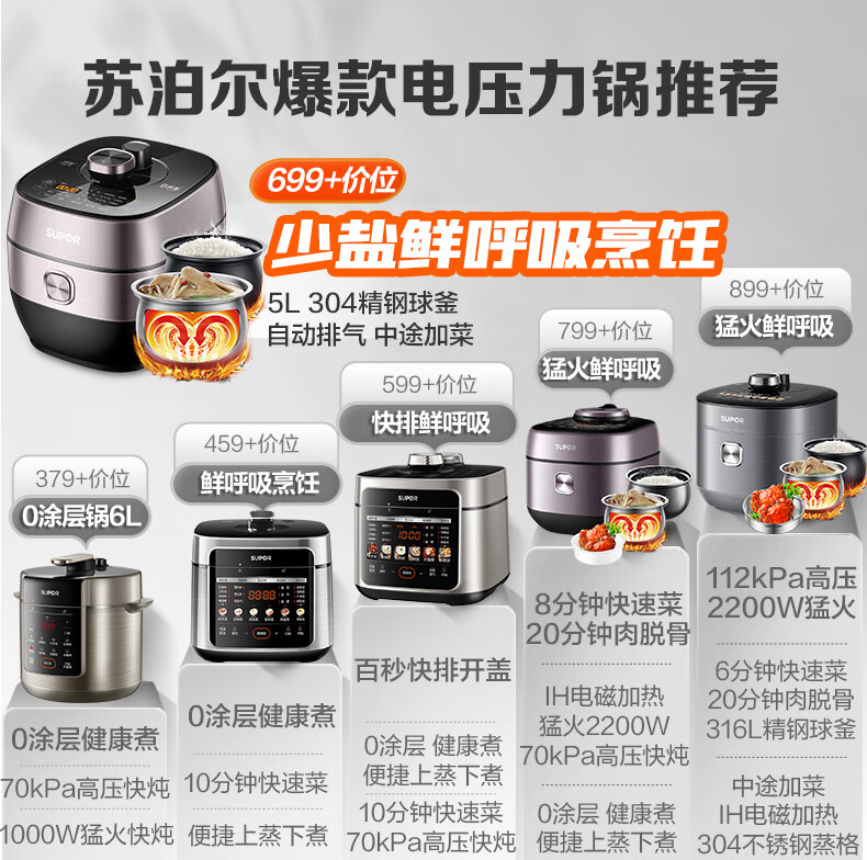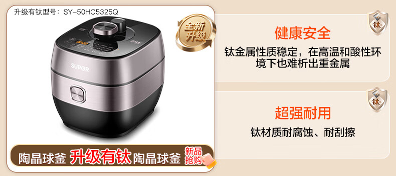 苏泊尔(SUPOR)鲜呼吸IH电压力锅5L家用自动排气304球釜SY-50HC8033Q双胆电饭煲高压锅4-6人内胆批次随机发货