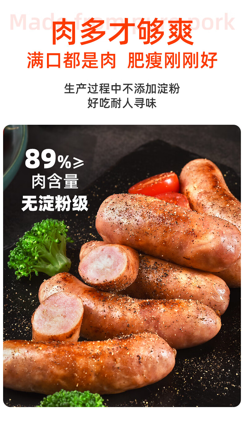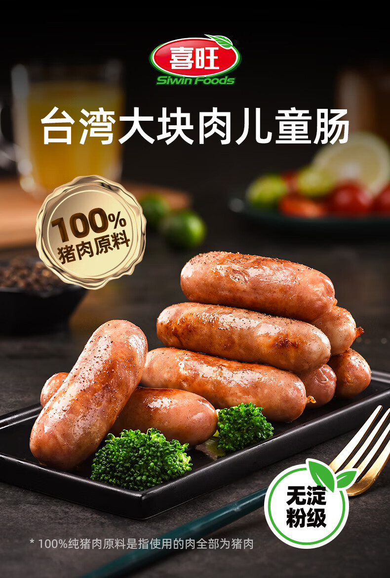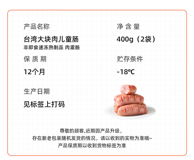 喜旺台湾大块肉儿童肠400g早餐肉肠烤肠空气炸锅烧烤食材