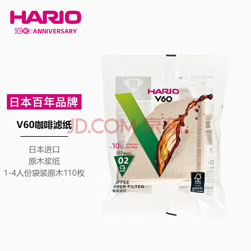HARIO日本进口V60手冲咖啡滤纸过滤纸滤网滤袋咖啡机滤纸袋装110枚02号