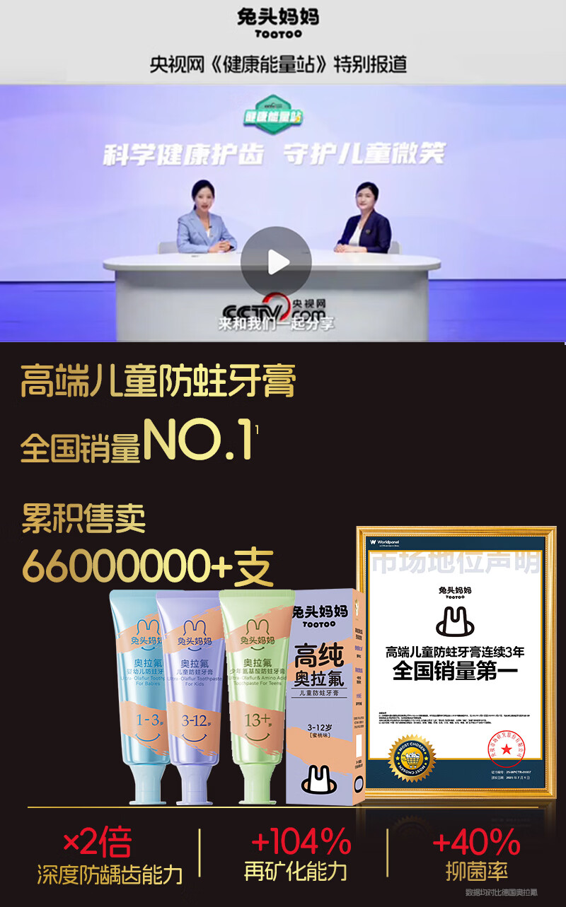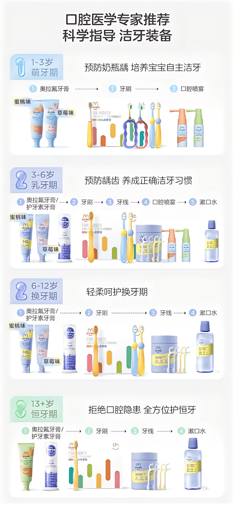 兔头妈妈儿童分龄奥拉氟牙膏7件3-12岁果味不辣口防蛀防龋齿低氟牙膏