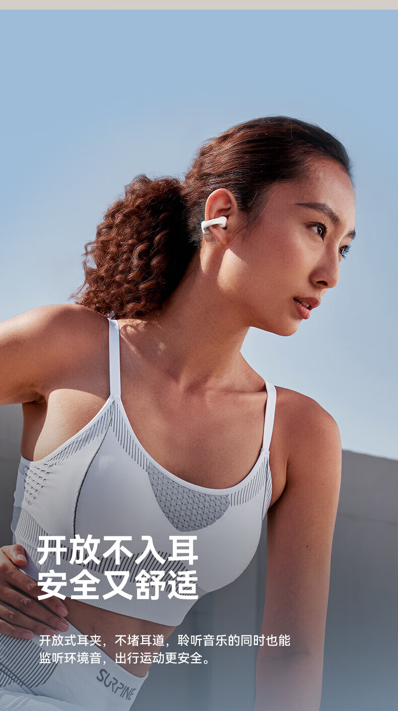 绿联 蓝牙耳机S8耳夹式主动降噪开放式气骨传导概念运动