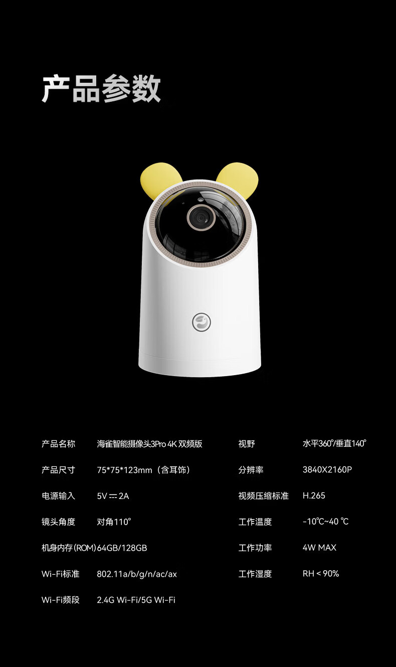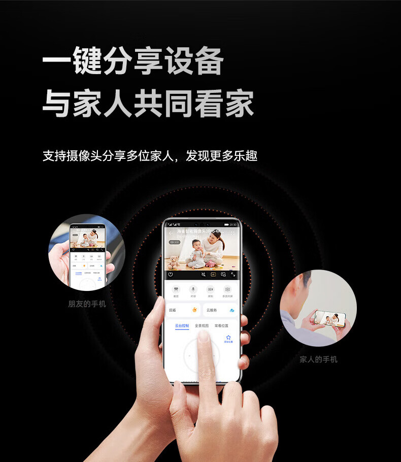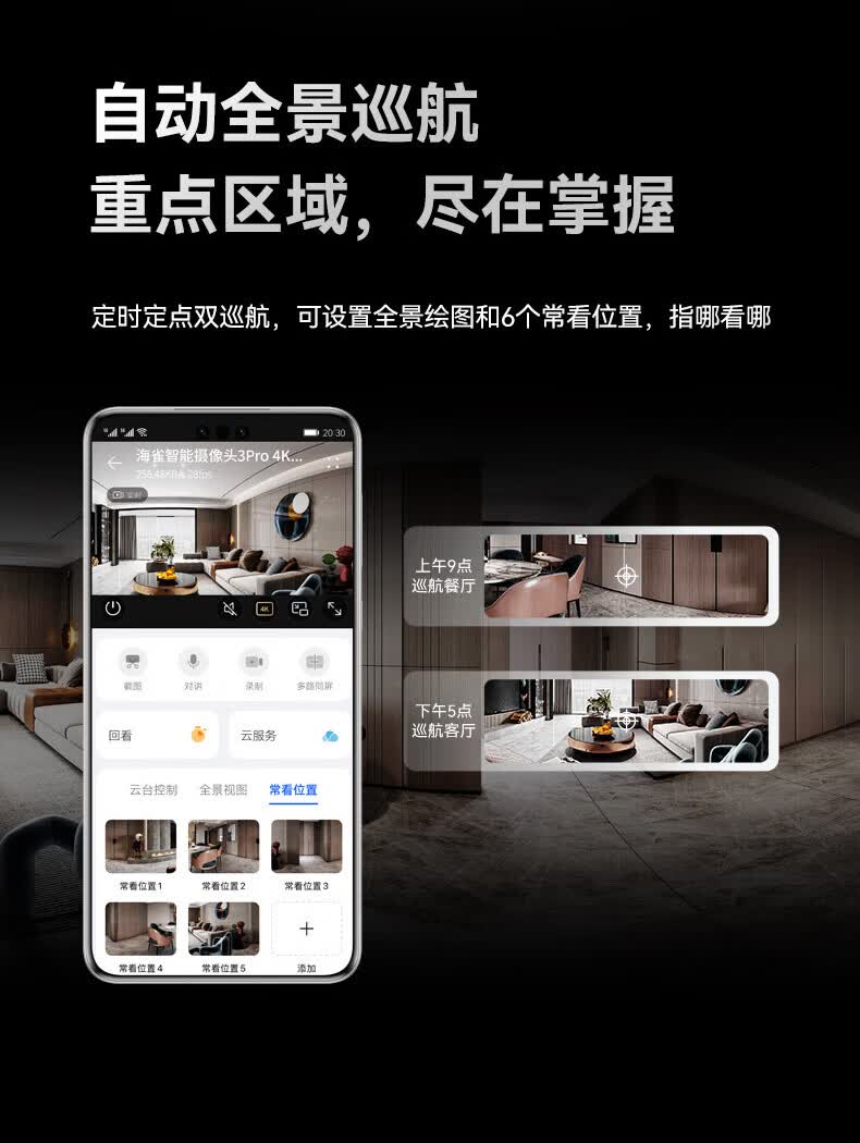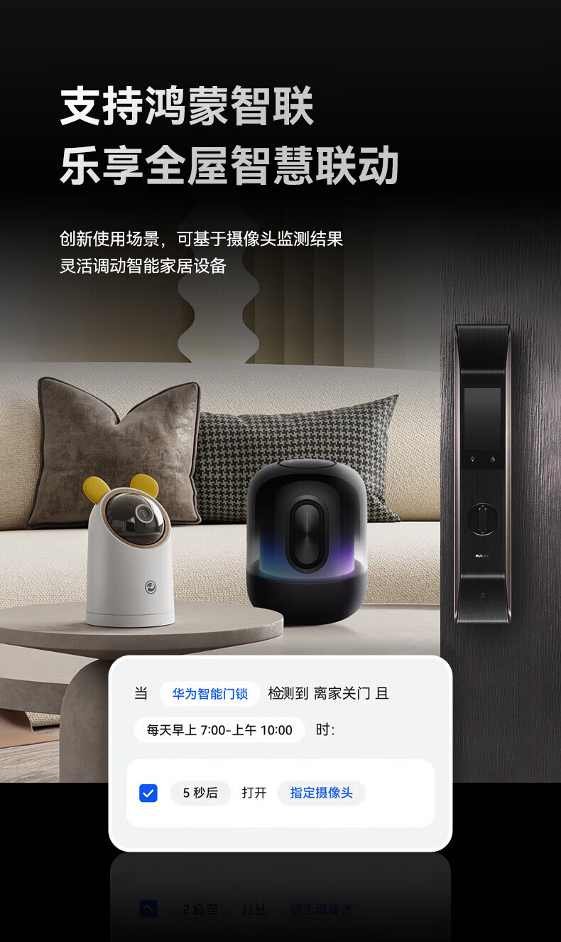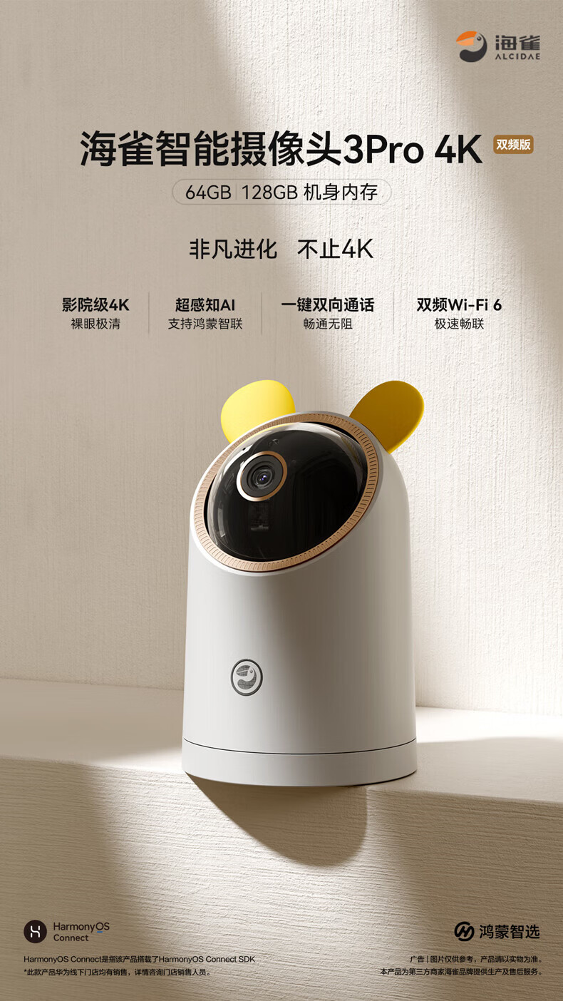 鸿蒙智选海雀800万摄像头监控家用手机远程360度无死角带