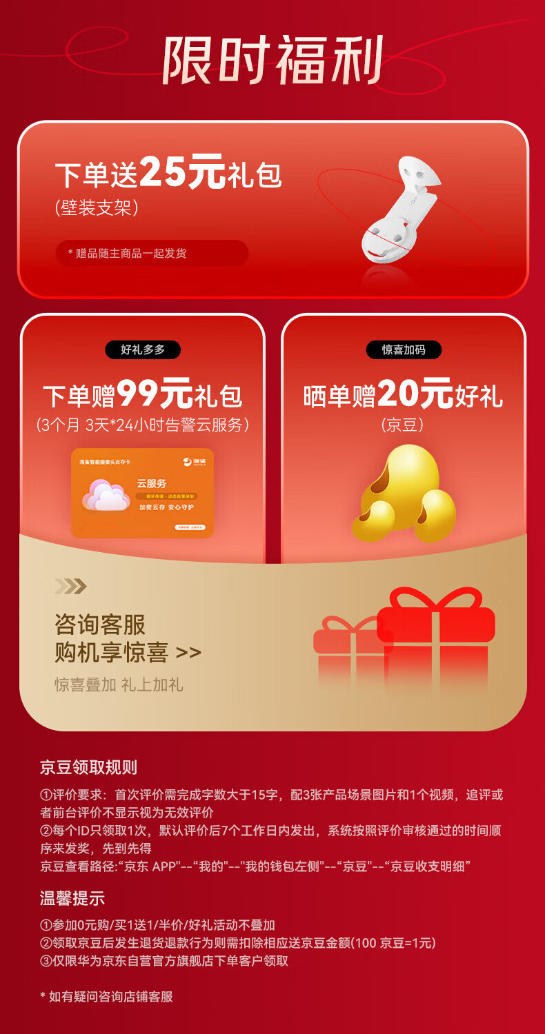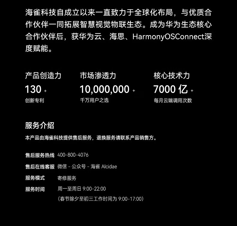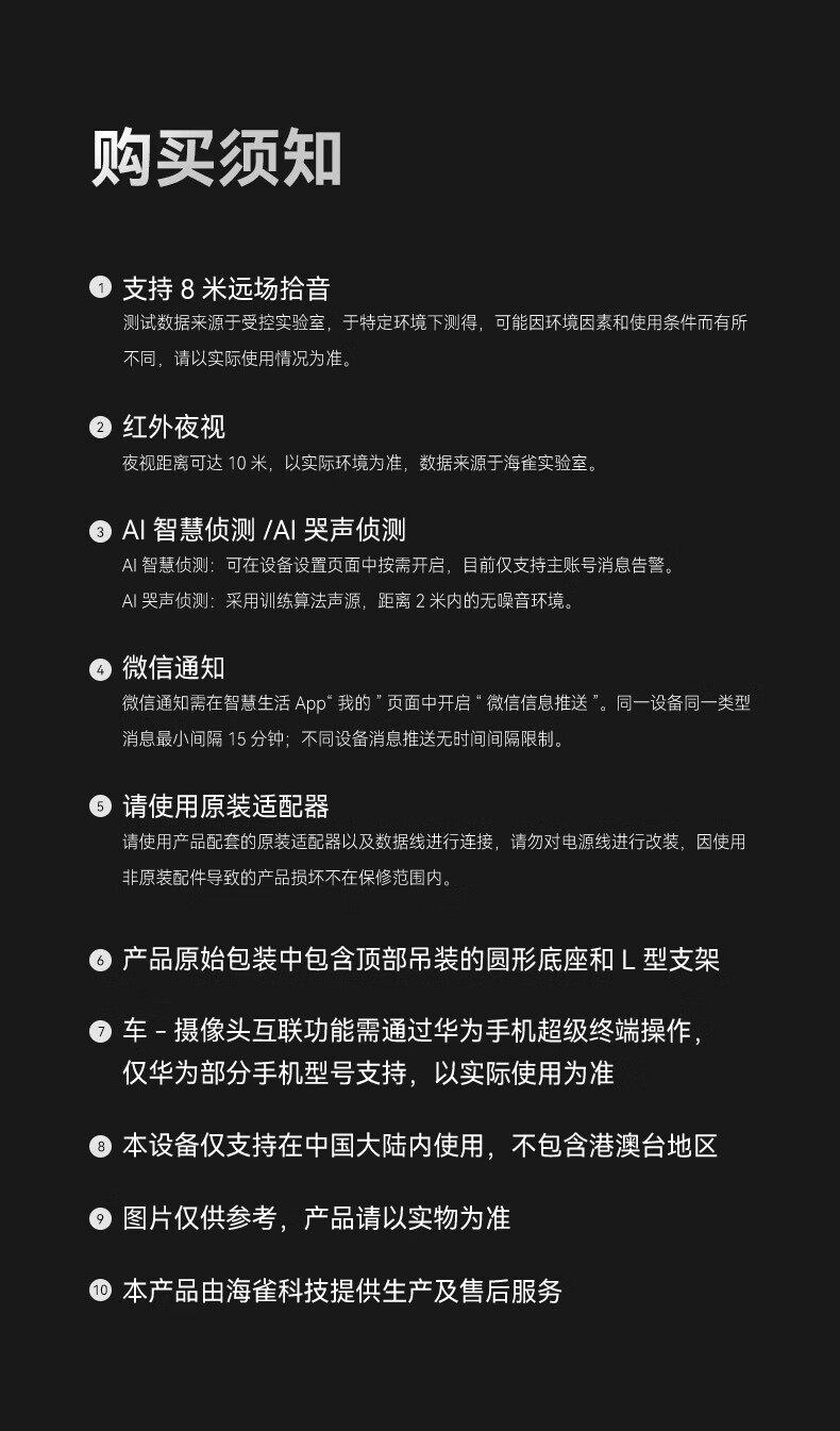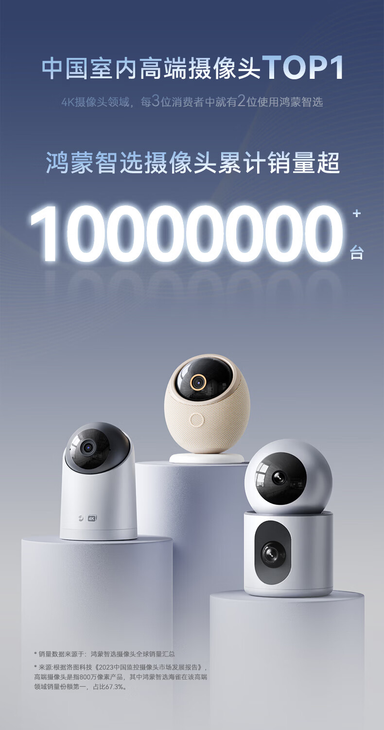 鸿蒙智选海雀800万摄像头监控家用手机远程360度无死角带