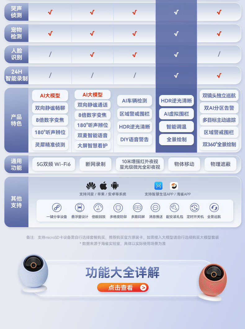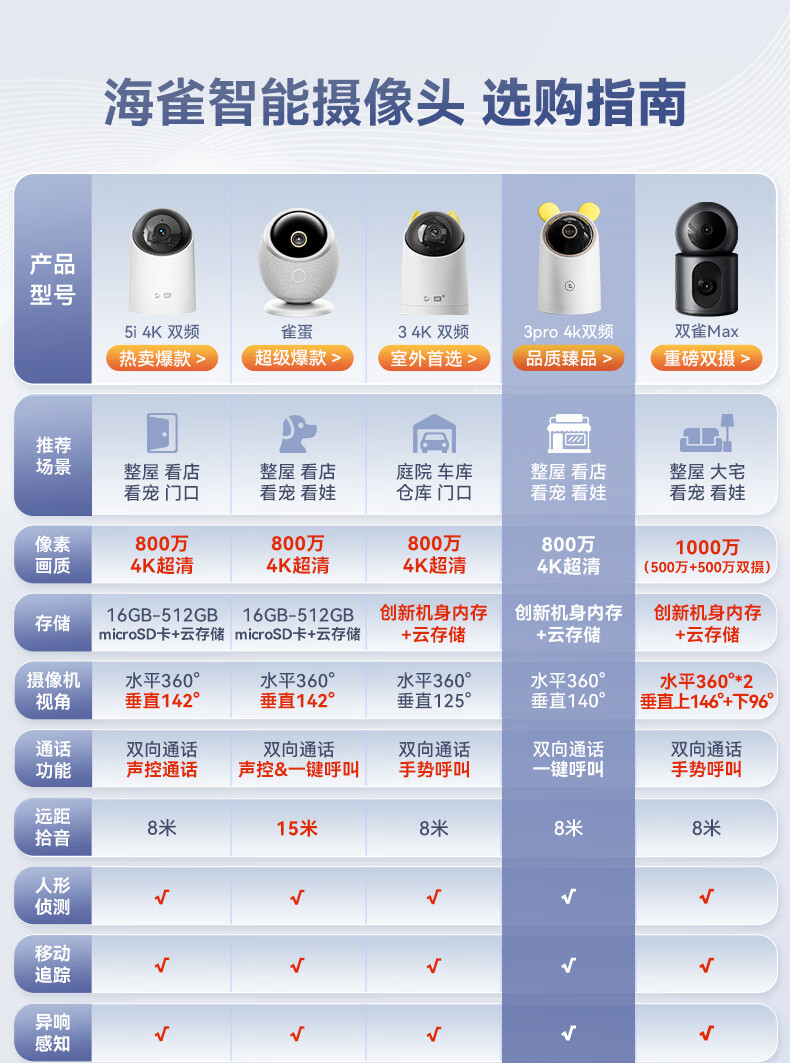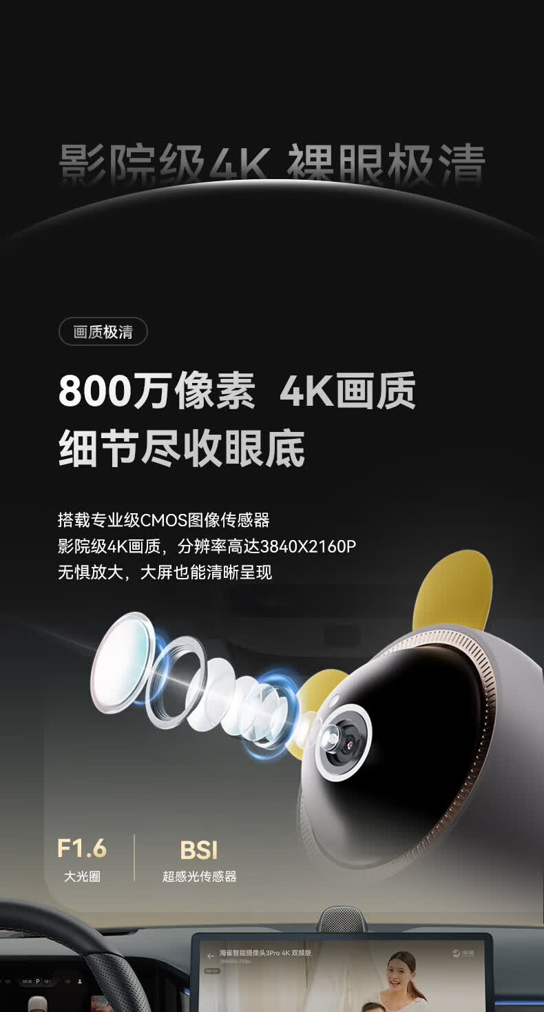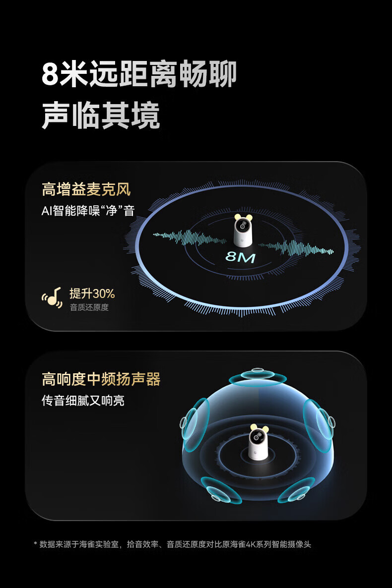 鸿蒙智选海雀800万摄像头监控家用手机远程360度无死角带夜视室内庭院无线免费回看宝宝婴儿宠物看护3Pro4K