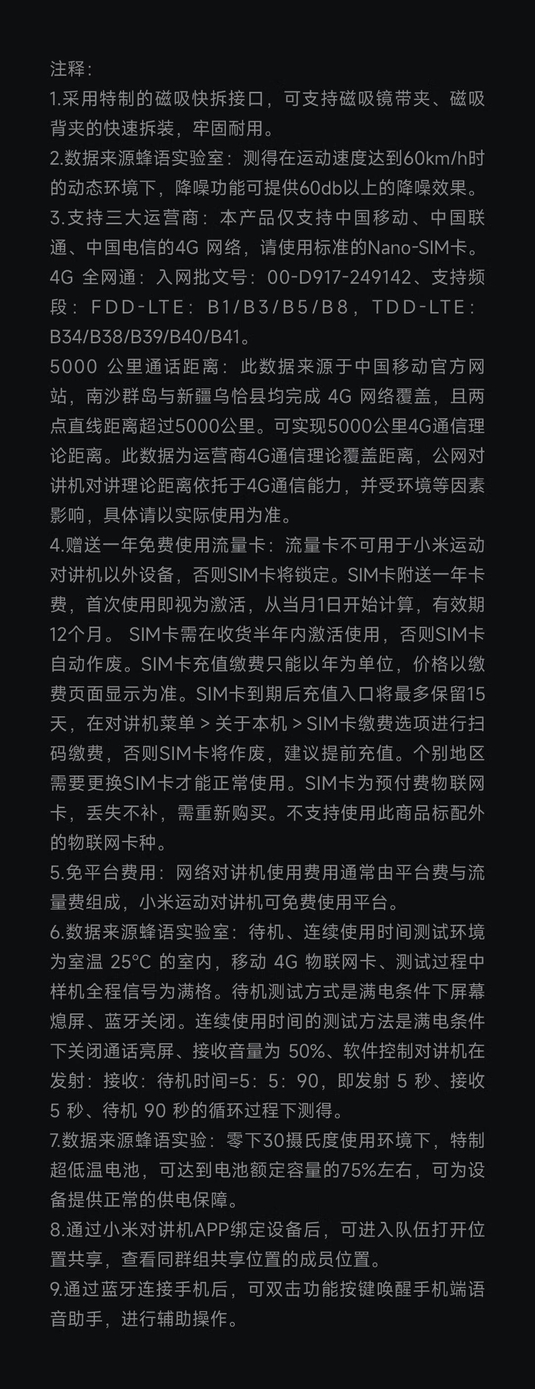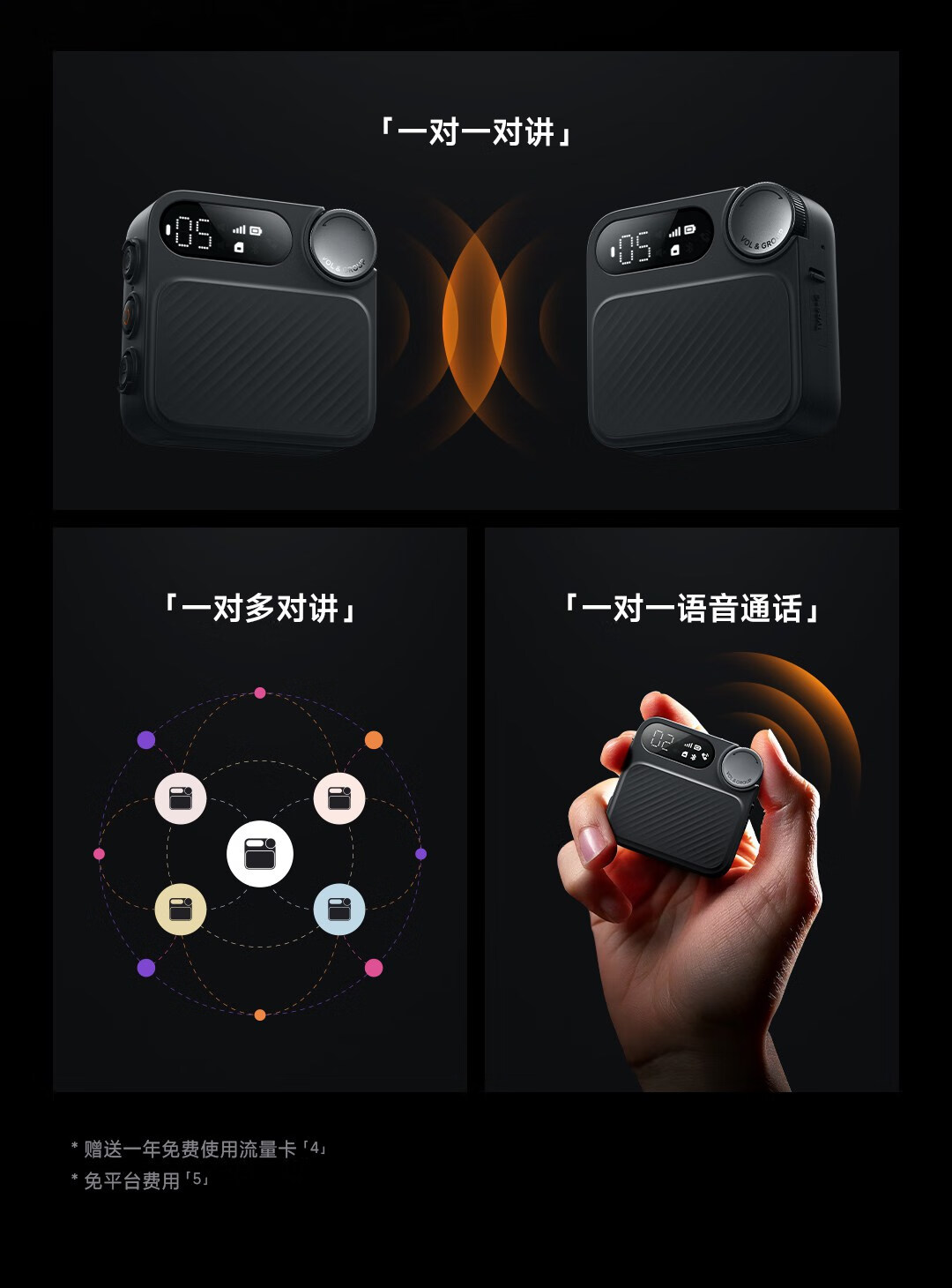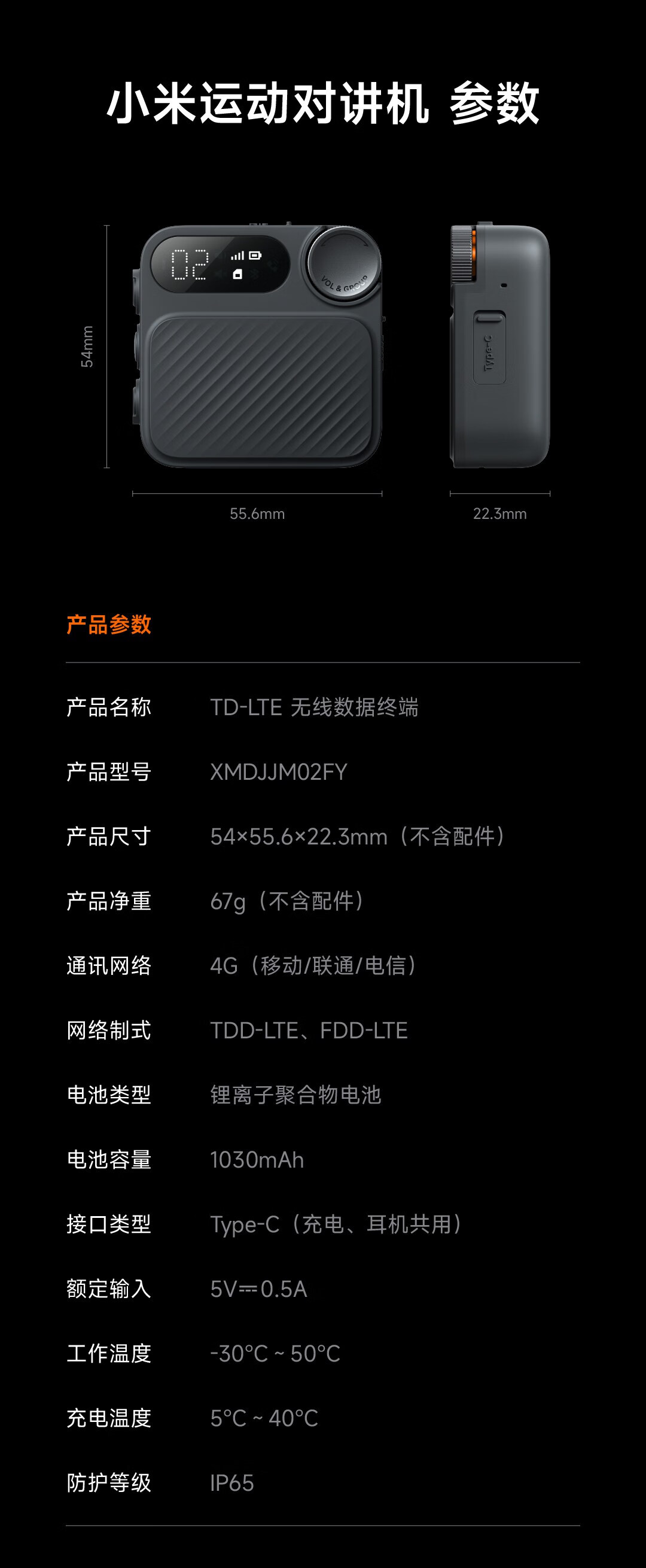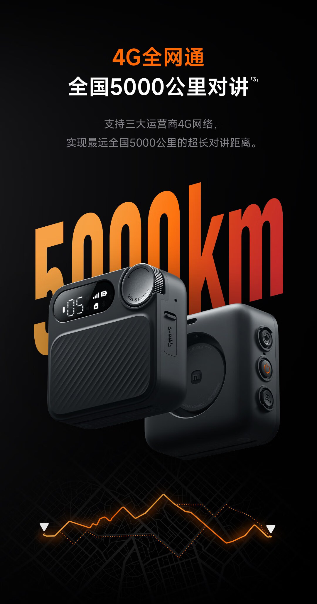 小米运动对讲机滑雪对讲机位置共享户外骑行自驾游5000公里手台(4G全网通+Type-c充电+APP组队)
