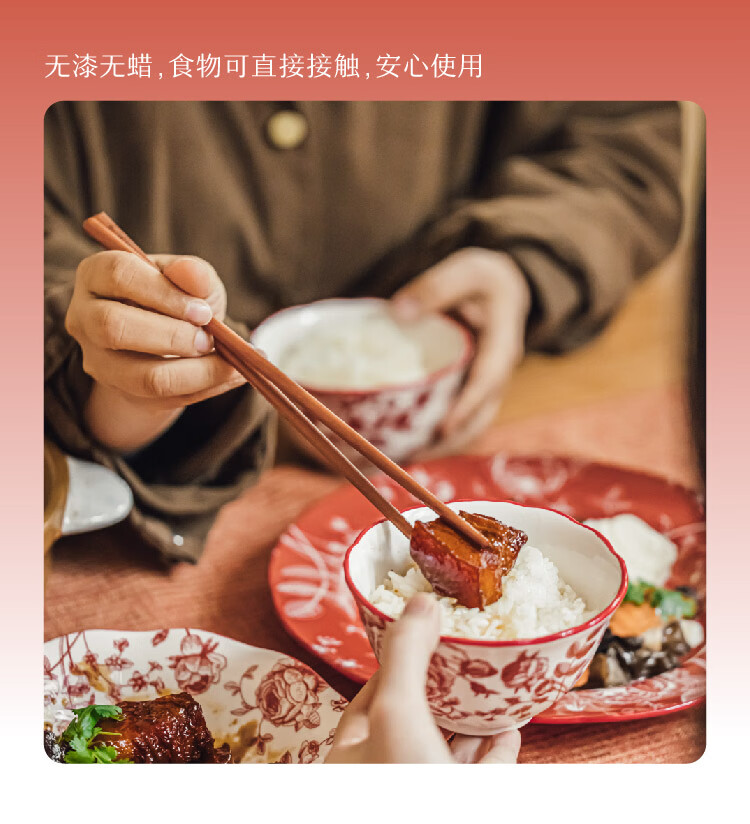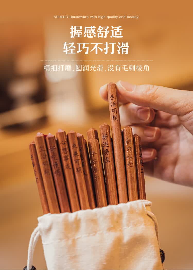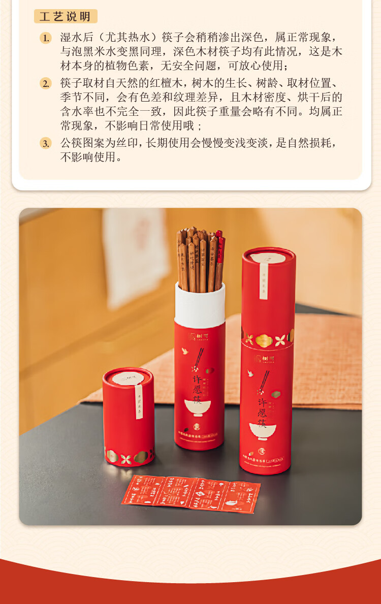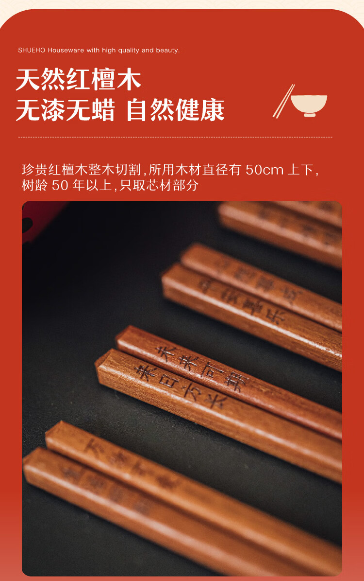 树可红檀木许愿筷子家用抗菌防霉无漆无蜡木质长一人一双专人专用筷子