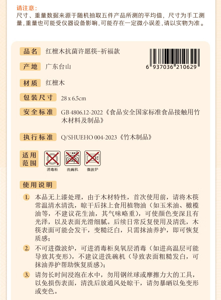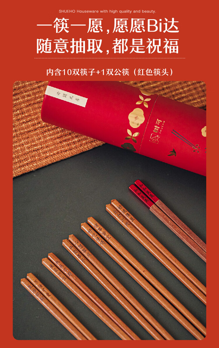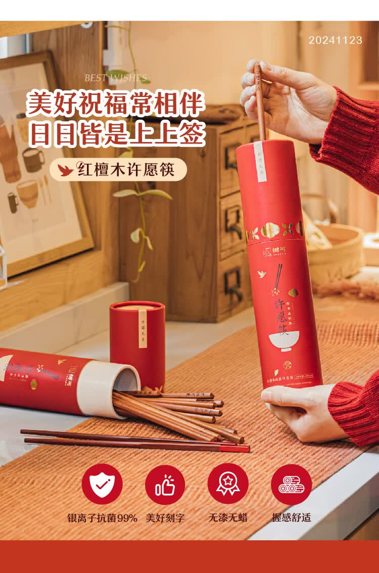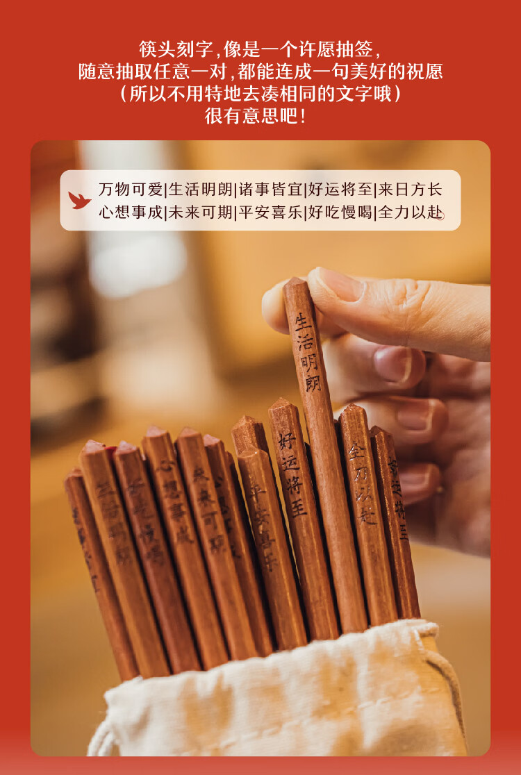 树可红檀木许愿筷子家用抗菌防霉无漆无蜡木质长一人一双专人专用筷子