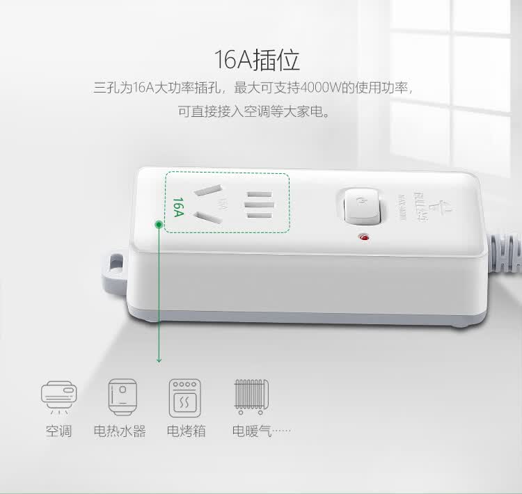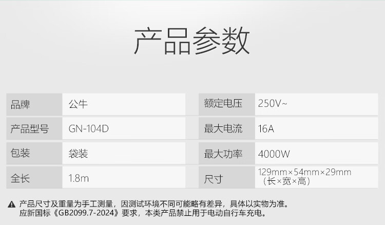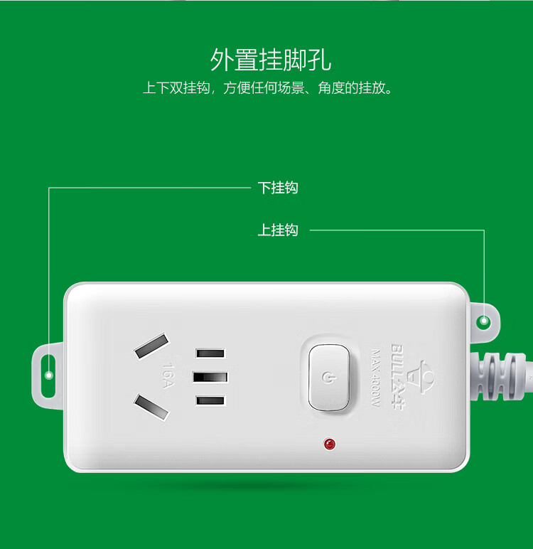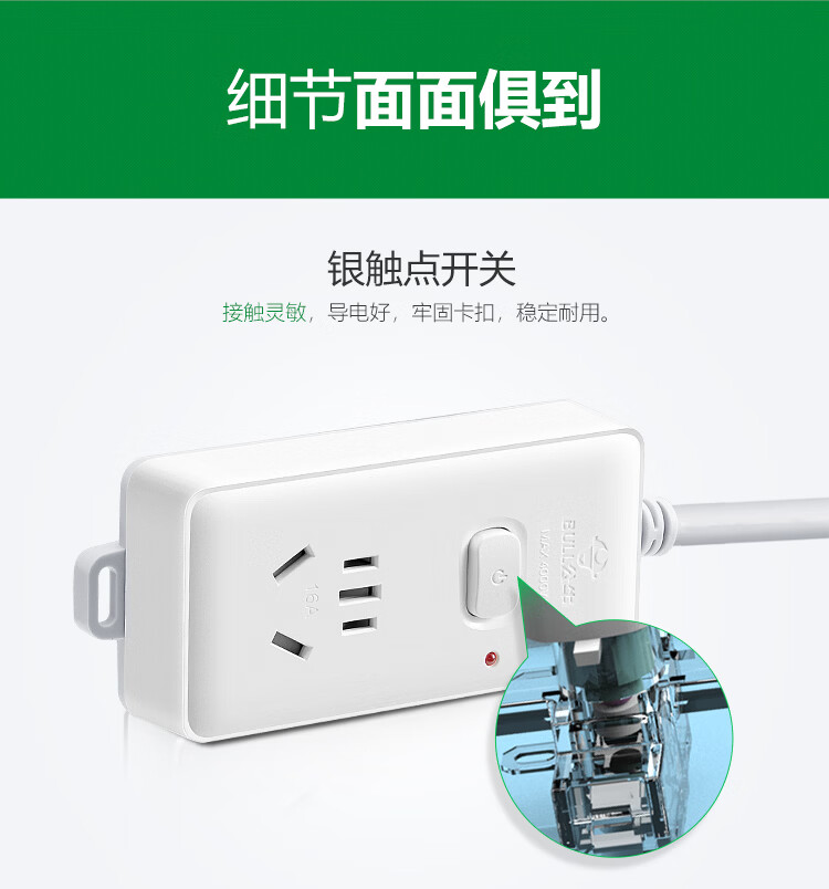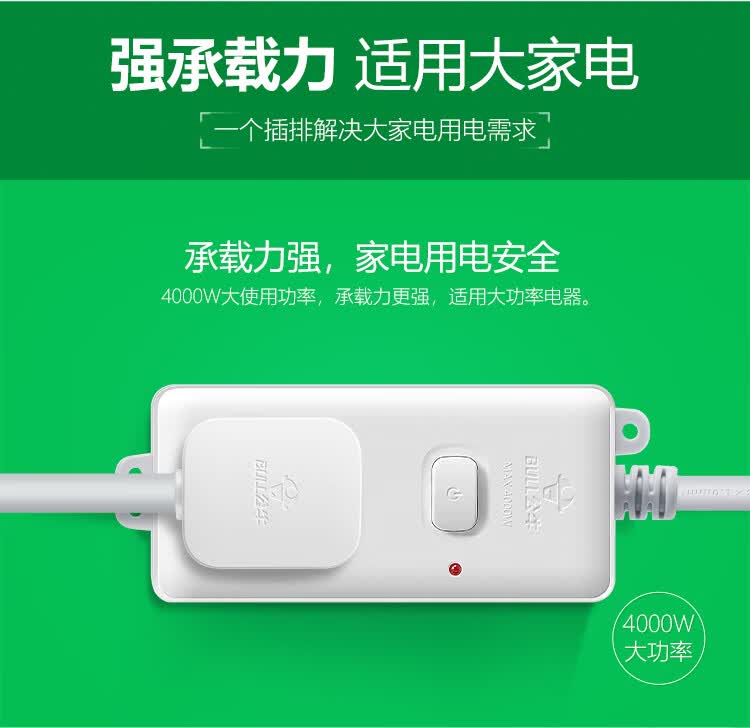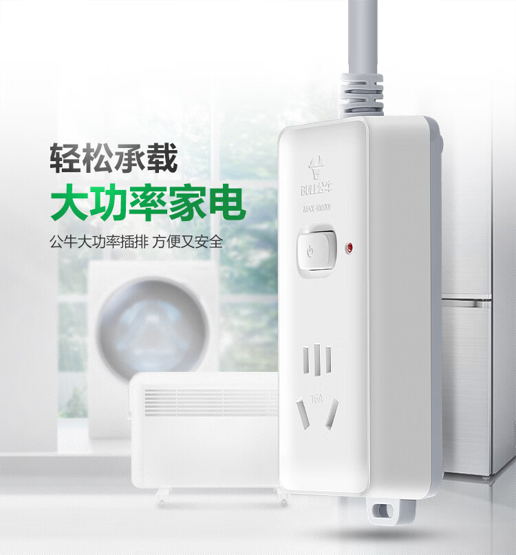 公牛(BULL)大功率16A插座16a排插/插排/插线板接线板 适用空调热水器电暖气 1位总控全长1.8米送10A头GN-104D