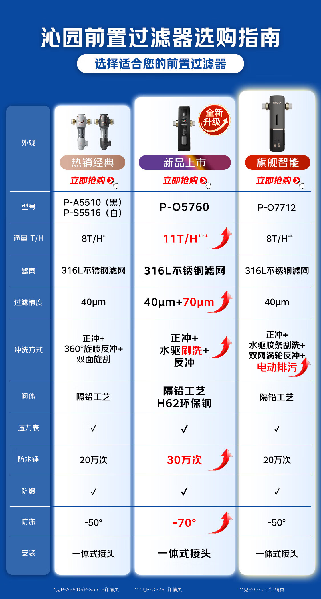 沁园家用前置过滤器 8T自动清洗反冲洗防爆防冻40微米自来水过滤器 水压监测全屋净水器P-O7712