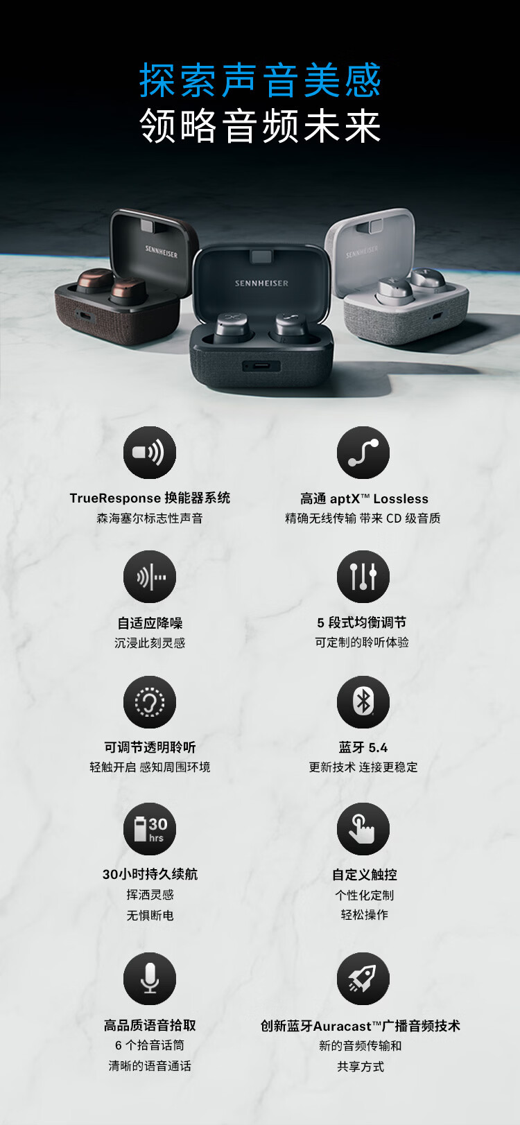 森海塞尔(Sennheiser)【焕新补贴】MOMENTUM真无线4代 蓝牙音乐耳机 主动降噪入耳式耳机 石墨黑 礼物