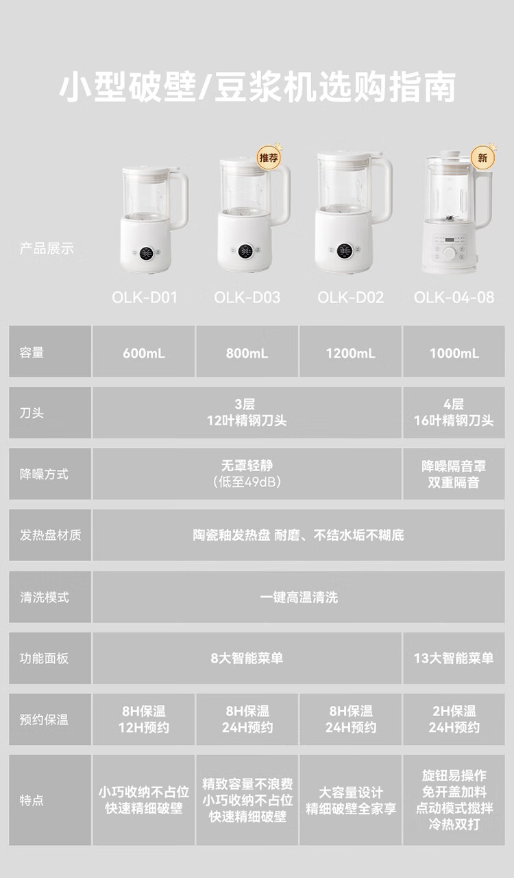 olayks立时破壁机家用低音全自动免煮1.2L豆浆机多功能免手洗小型榨汁机2-3人五谷杂粮辅食料理机