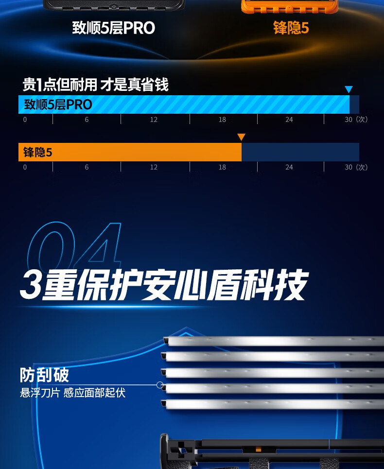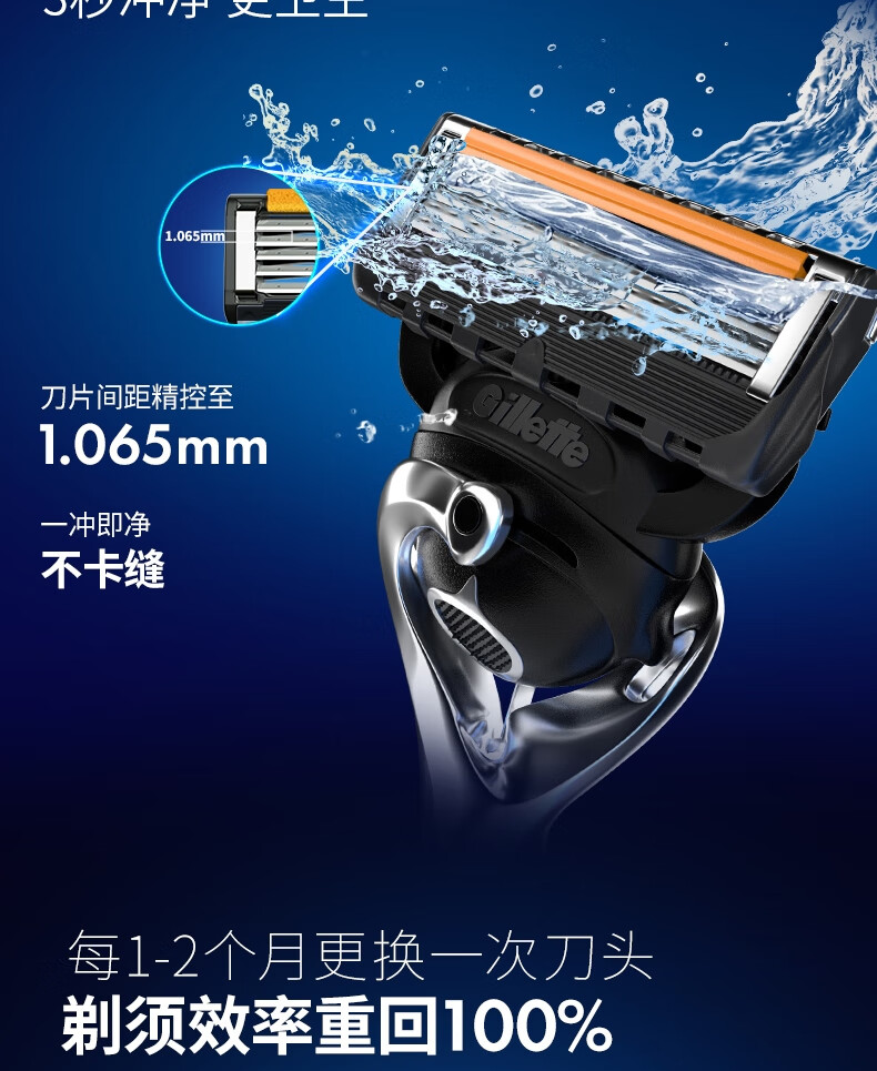 吉列刀片 刮胡刀干净不留黑点 剃须刀手动 引力盒适配锋