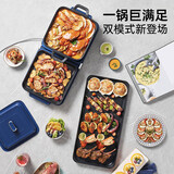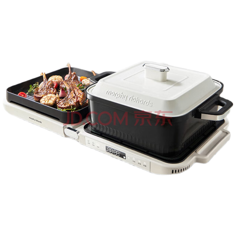摩飞电器三代折叠多功能锅 家用聚会嗨吃电火锅电煮锅电烧烤炉烤涮一体不沾煎烤料理锅【标配】MR9188白