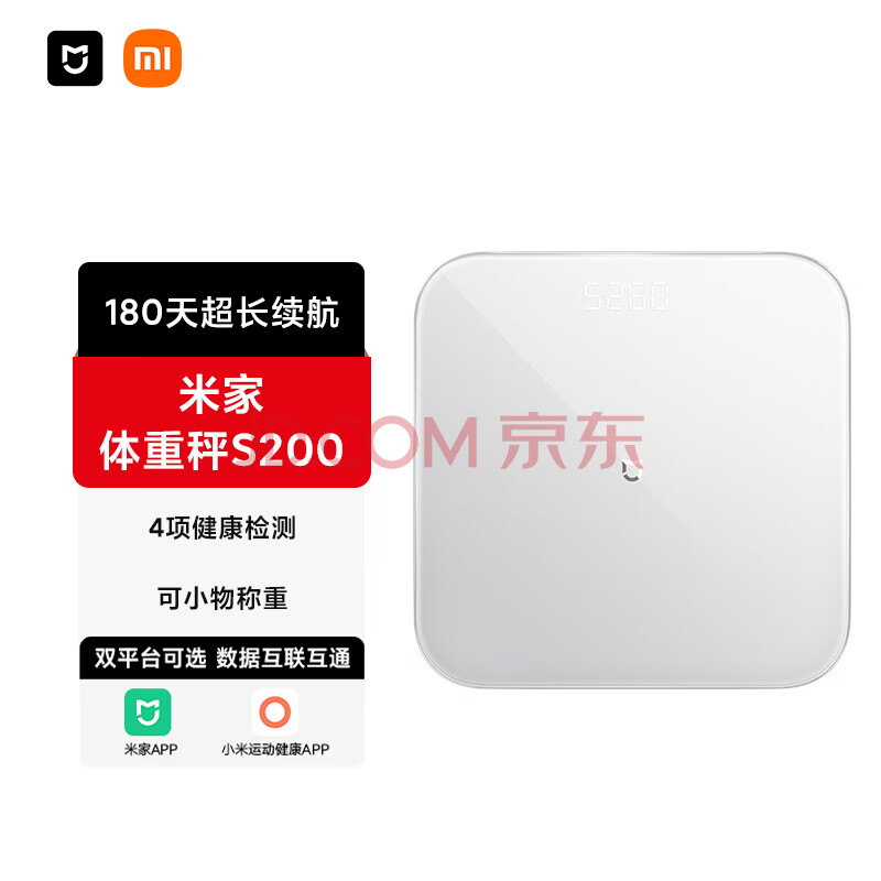 米家(MIJIA)小米智能体重秤S200 白色 双接家用健康秤电子秤人物双模式 APP高精准数据测量 智能分析 减肥专用