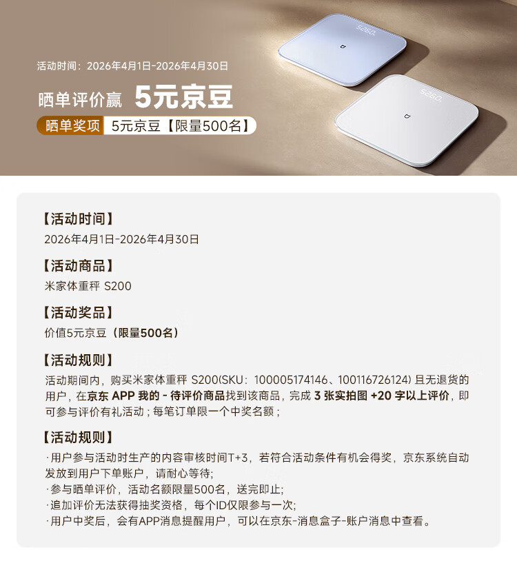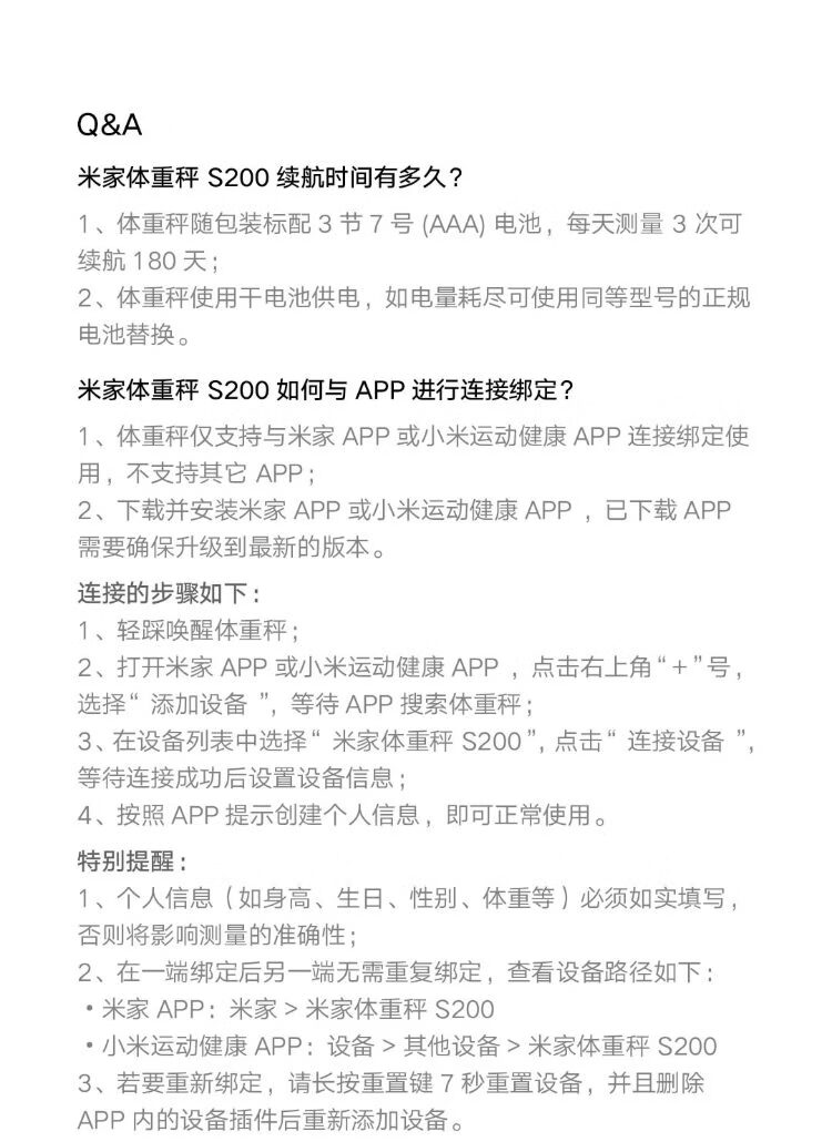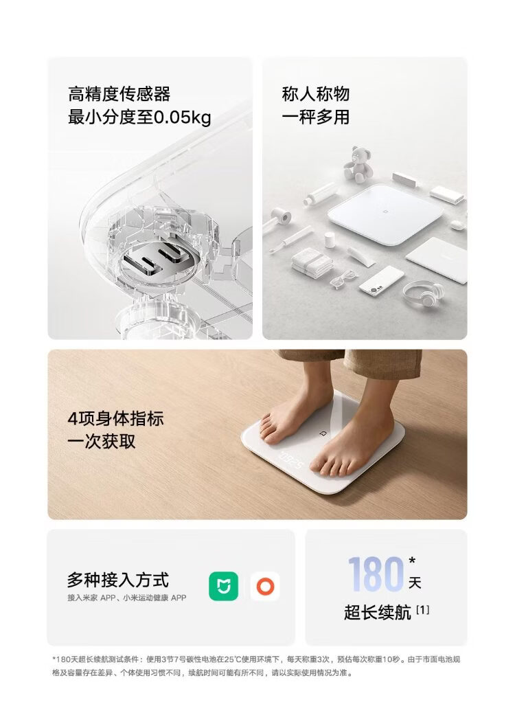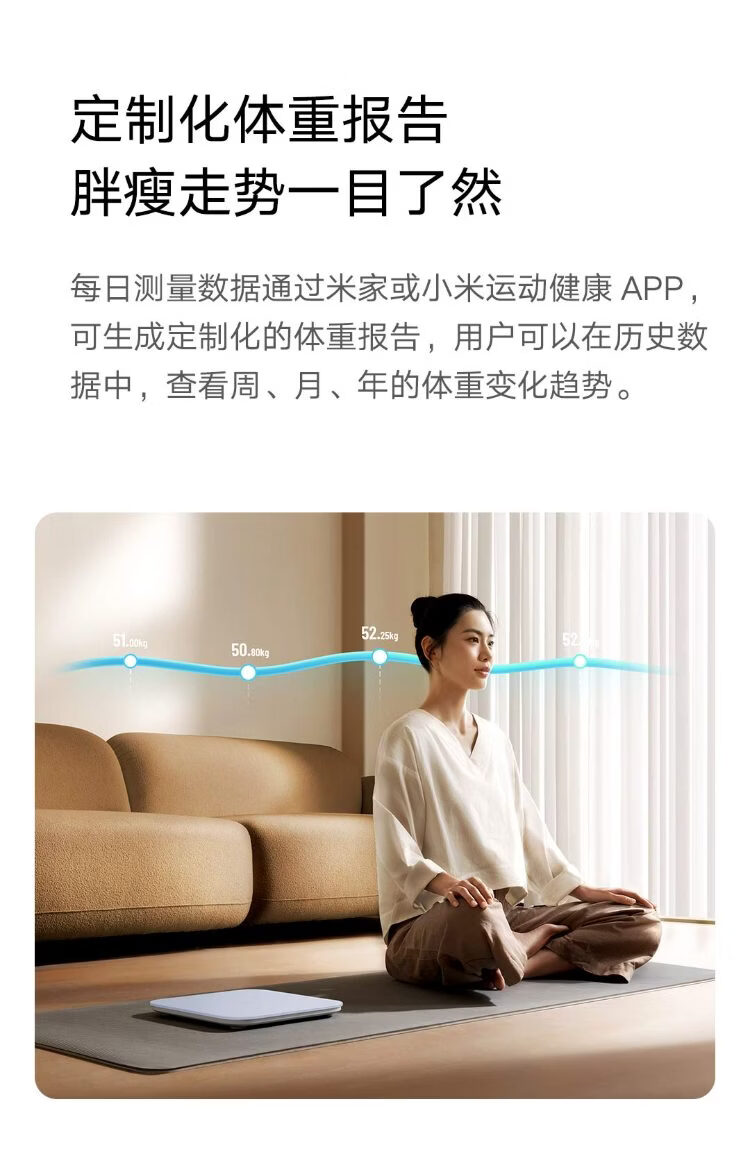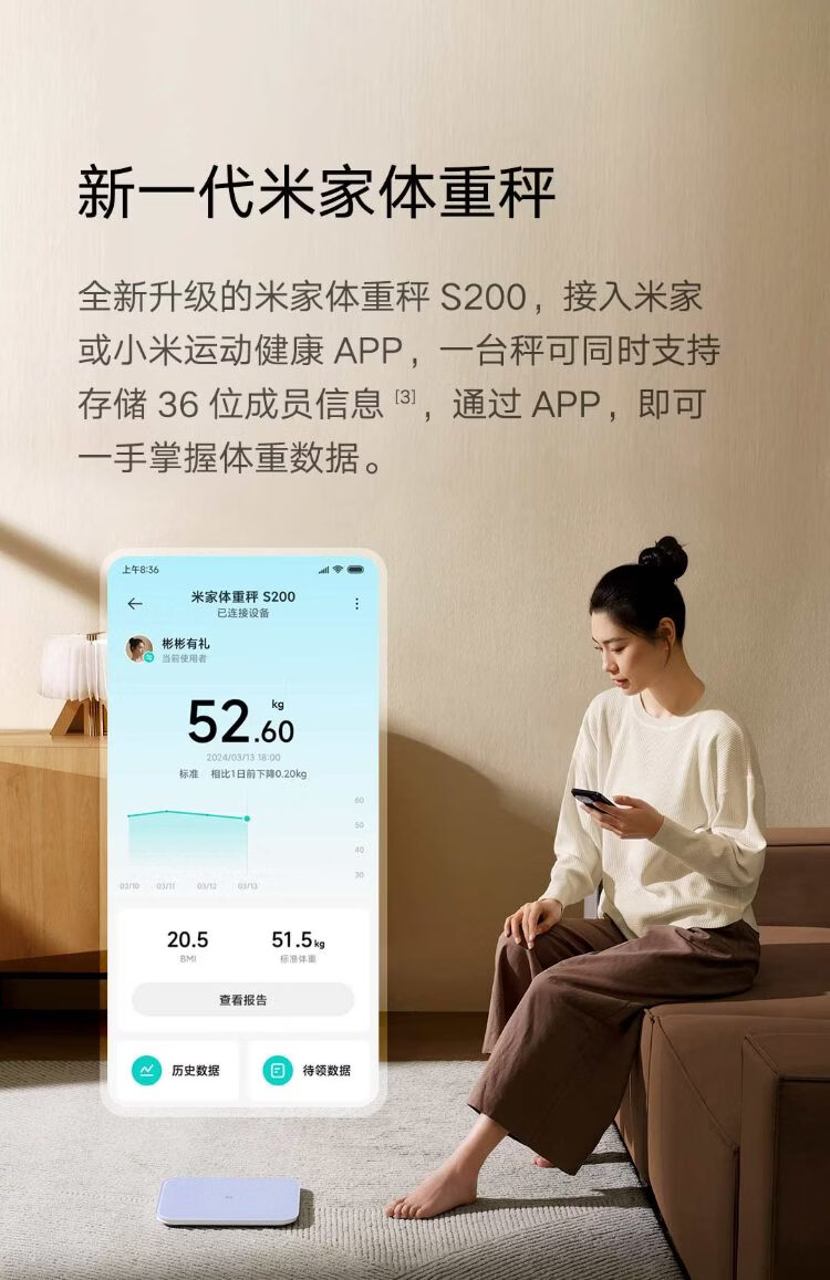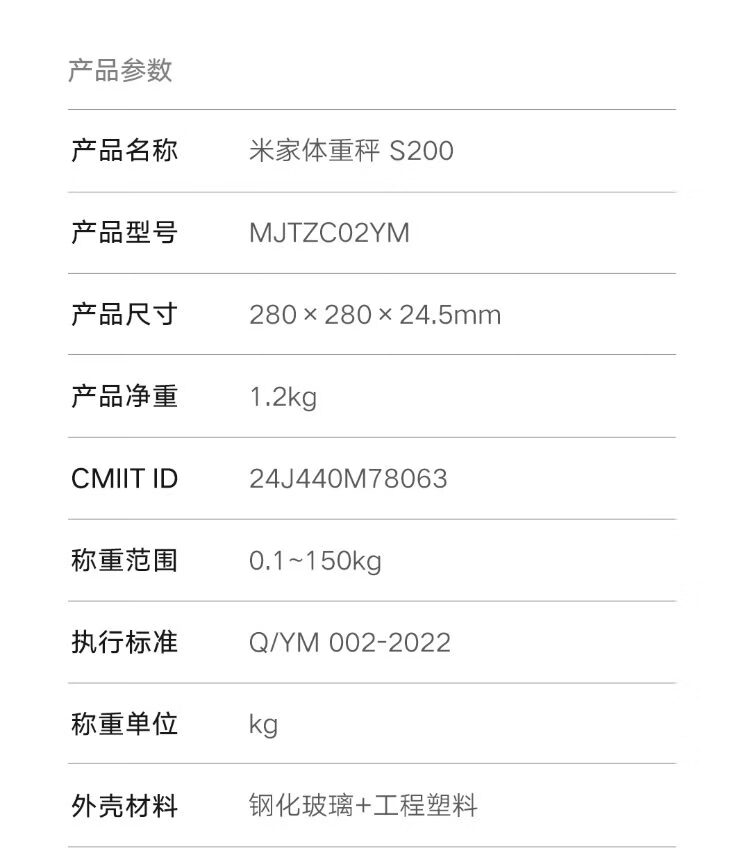米家小米智能体重秤S200 白色 双接家用健康秤电子秤人物双模式 APP高精准数据测量 体重管理 减肥专用