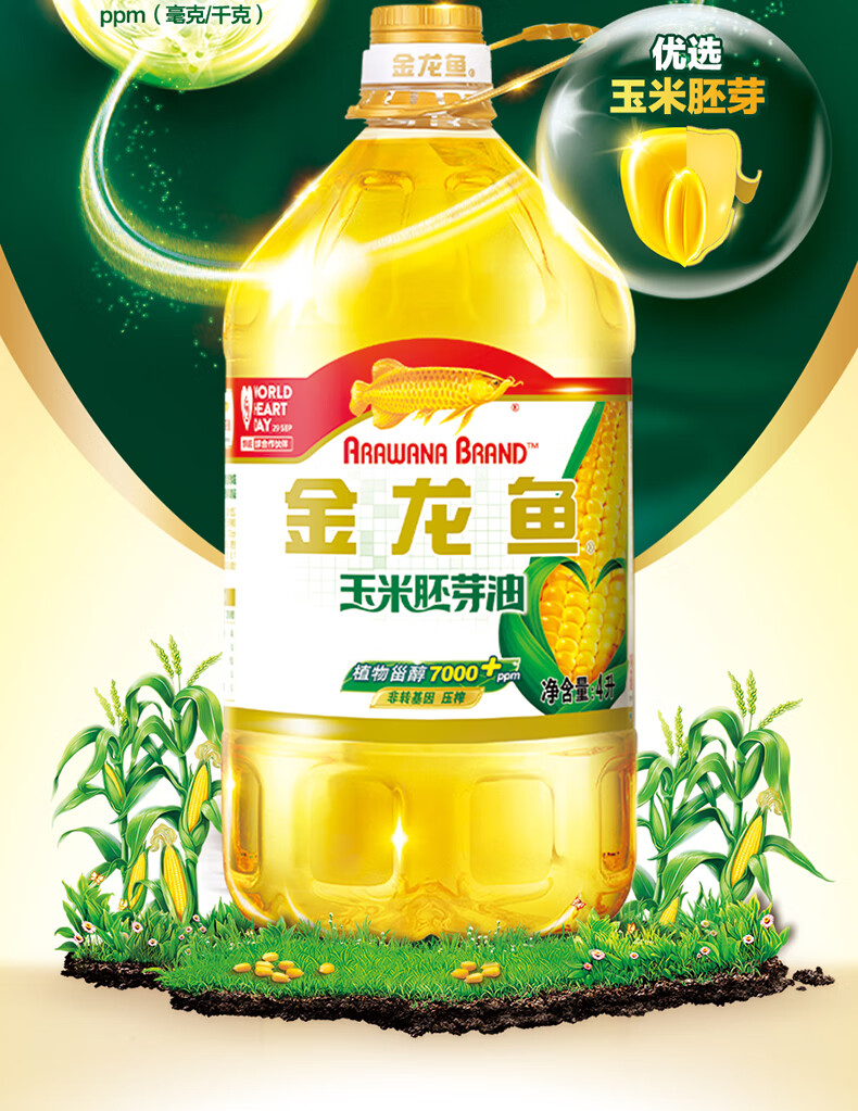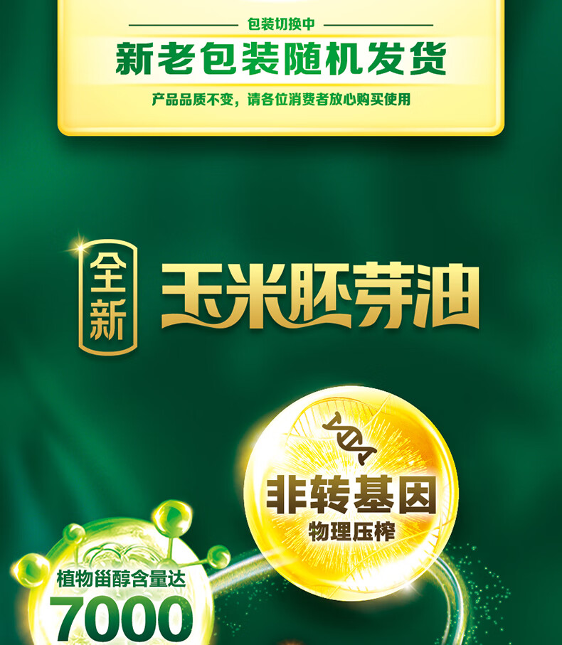 金龙鱼 食用油 非转基因压榨一级玉米胚芽油4L(新老包装随机发货)