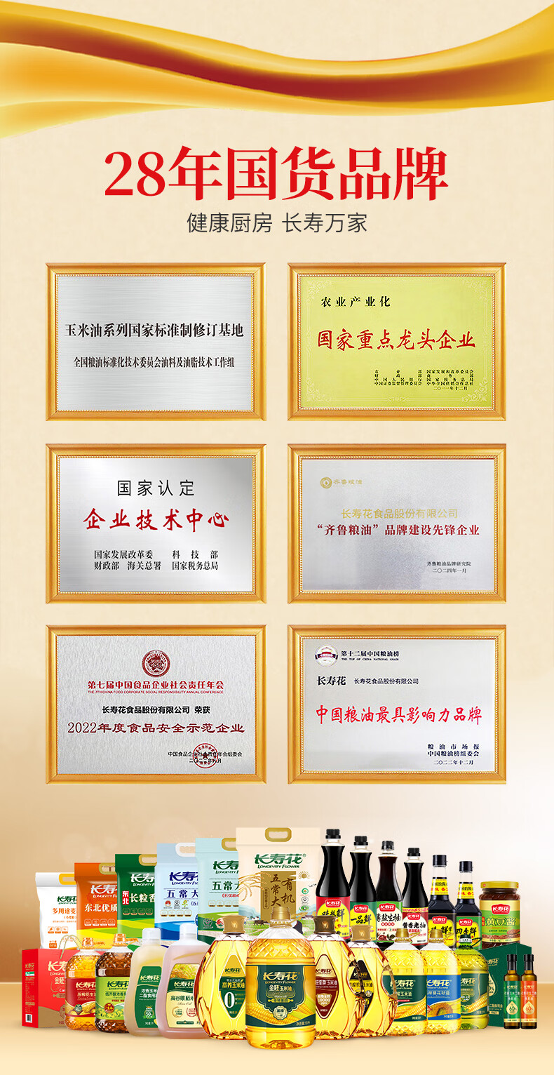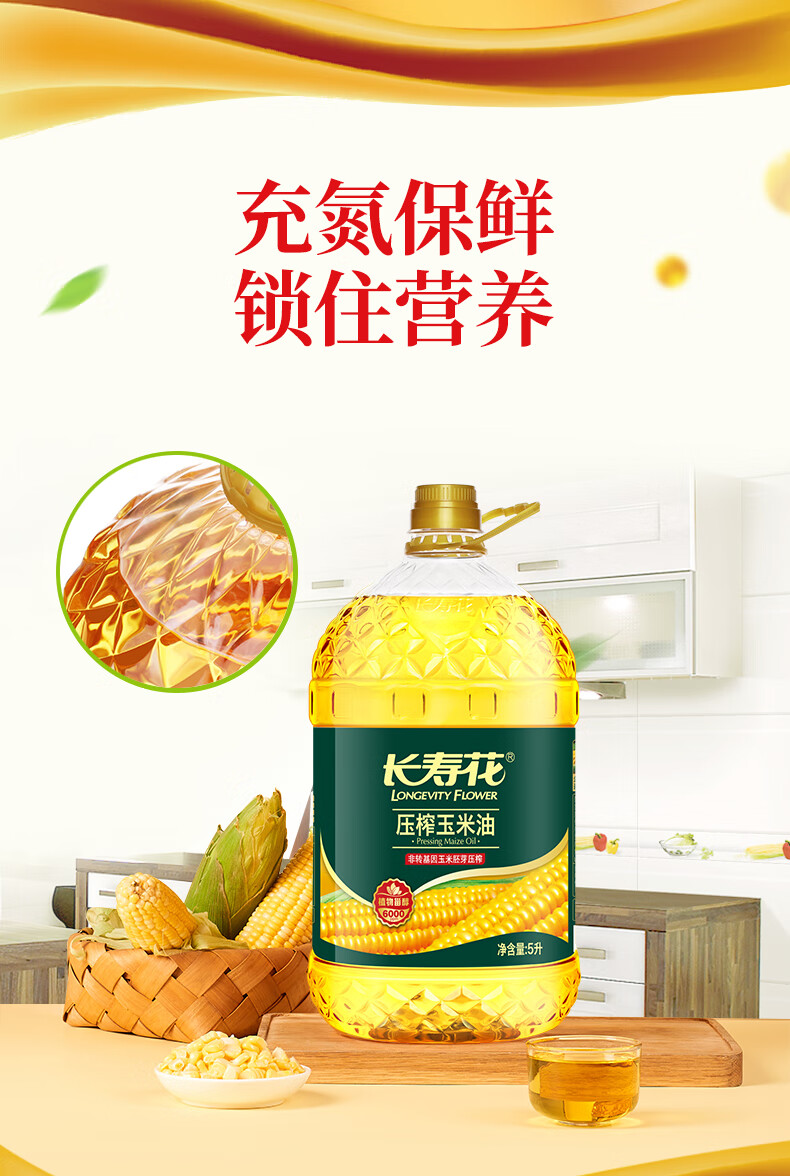 长寿花 压榨玉米油 5L 非转基因 压榨一级 食用油