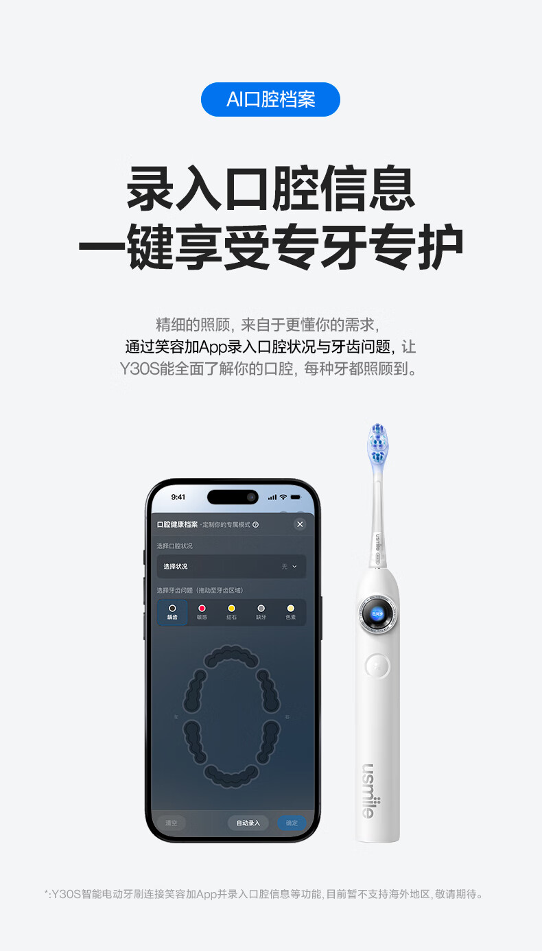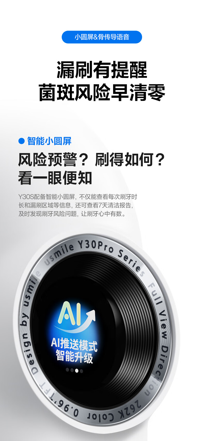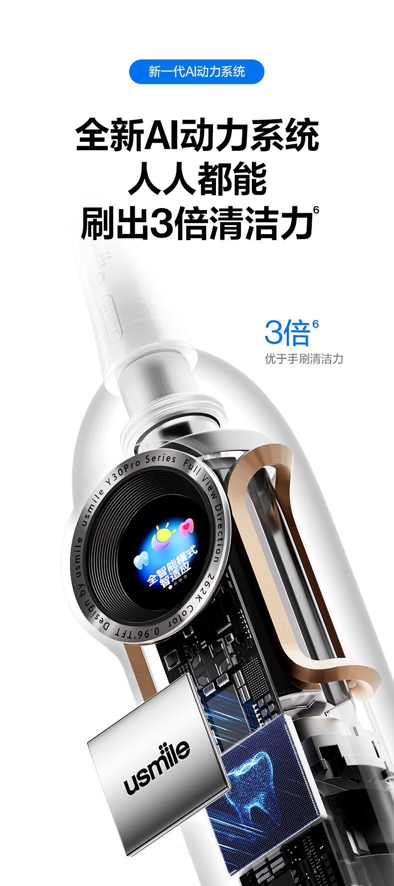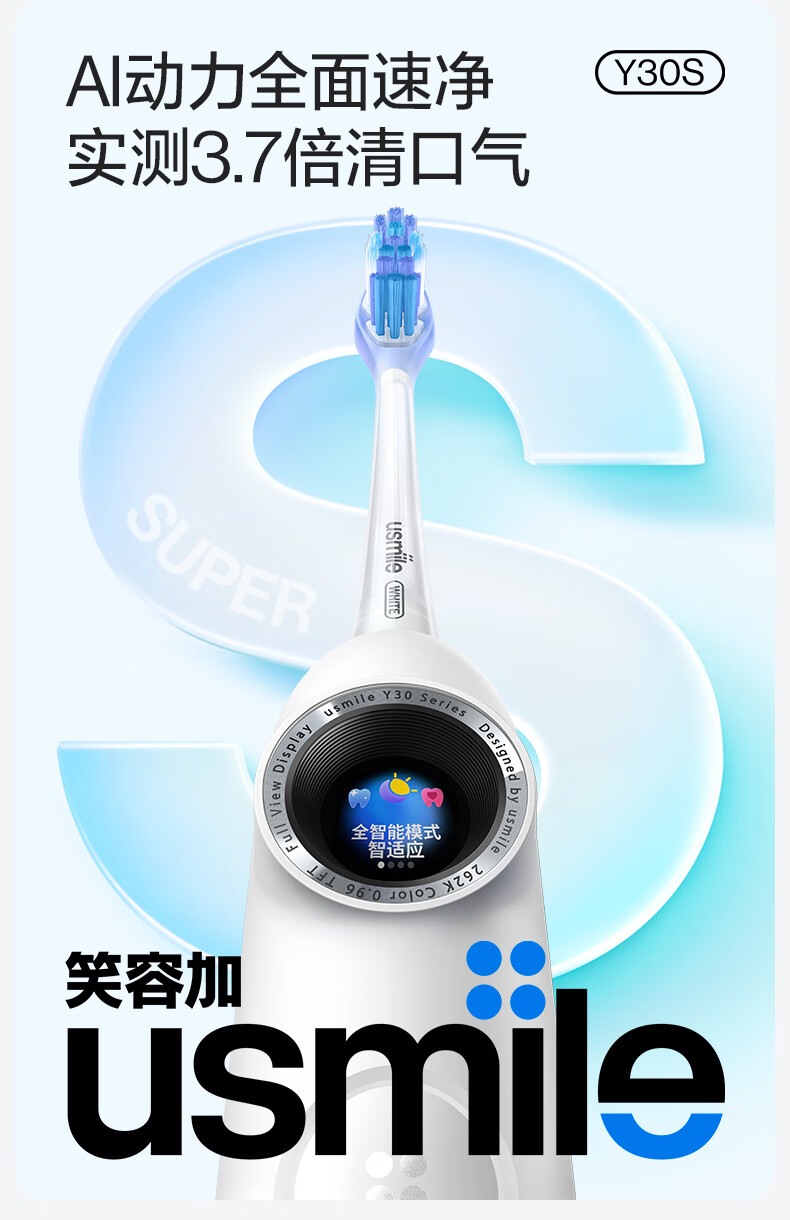 usmile笑容加电动牙刷y30s 智能AI新动力大摆幅 Y30S冰川白 情侣送男女友礼物 生日礼物 冠军同款