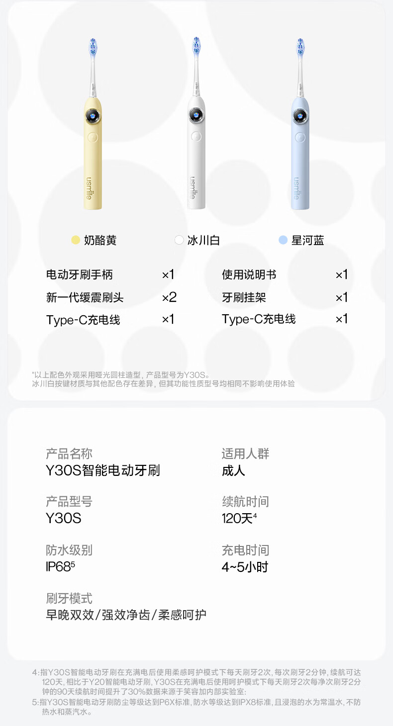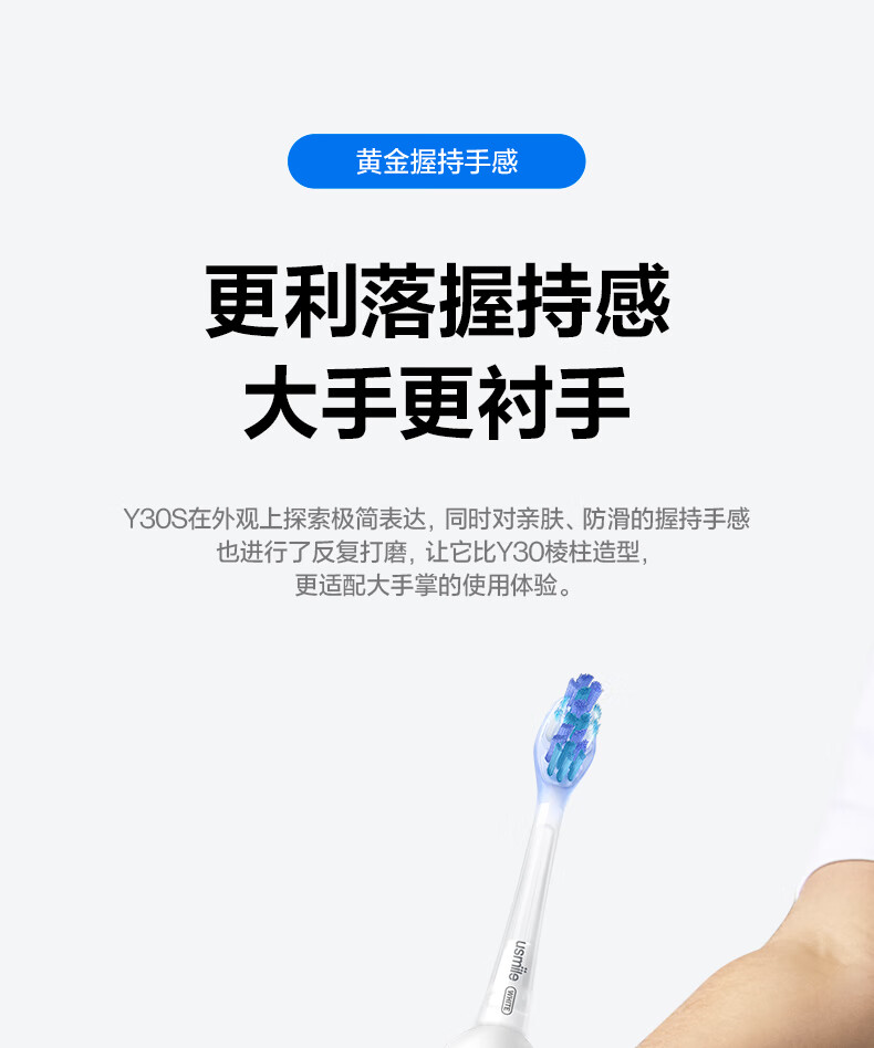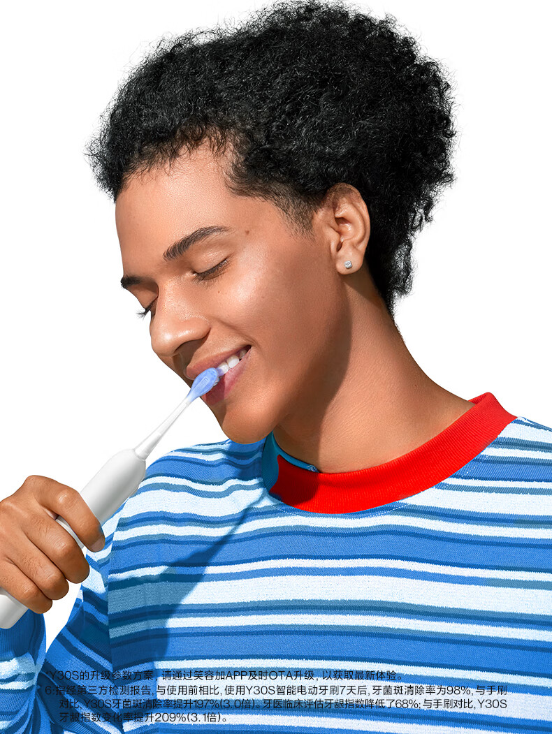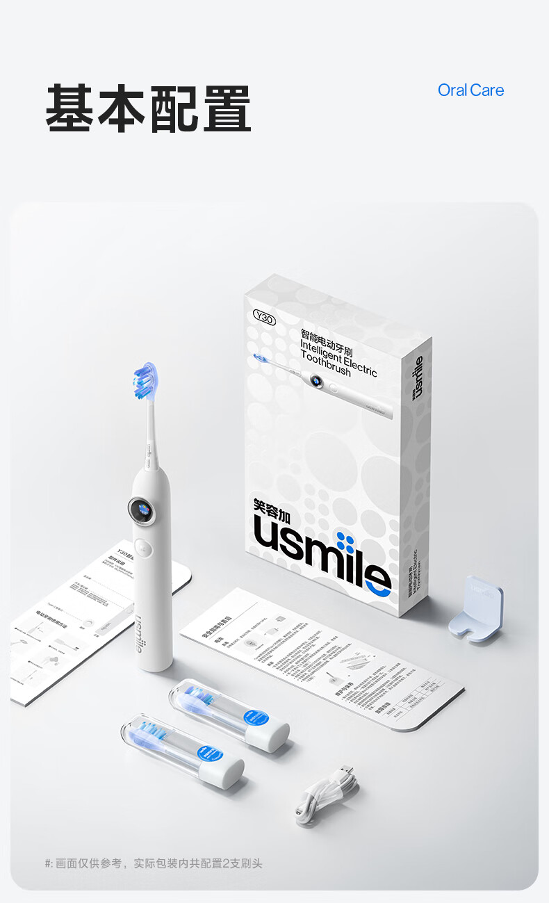 usmile笑容加电动牙刷y30s 智能AI新动力大摆幅 Y30S冰川白 情侣送男女友礼物 生日礼物 冠军同款