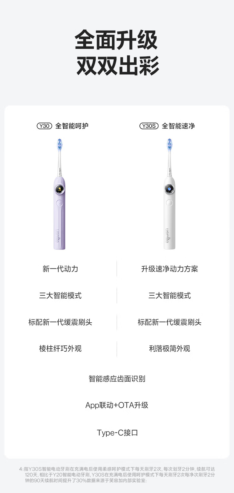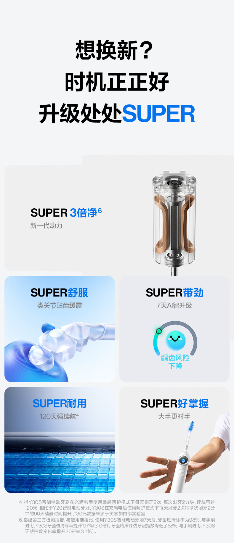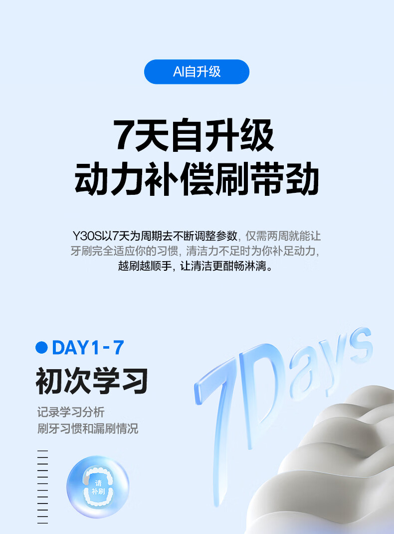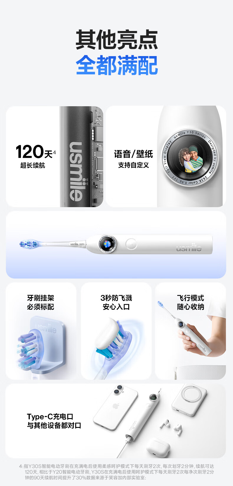 usmile笑容加电动牙刷y30s 智能AI新动力大摆幅 Y30S冰川白 情侣送男女友礼物 生日礼物 冠军同款