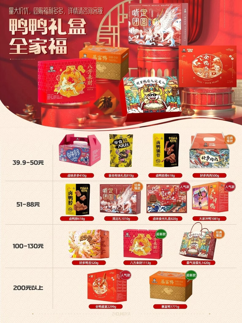 周黑鸭霸气宠爱礼 鸭腿鸭胗鸭脖 卤味年货零食礼盒送礼1420g