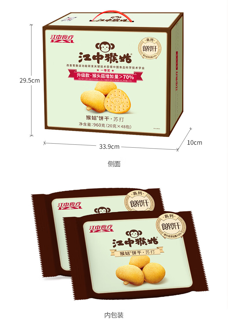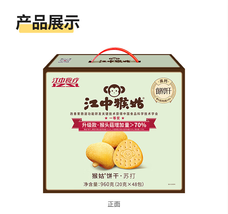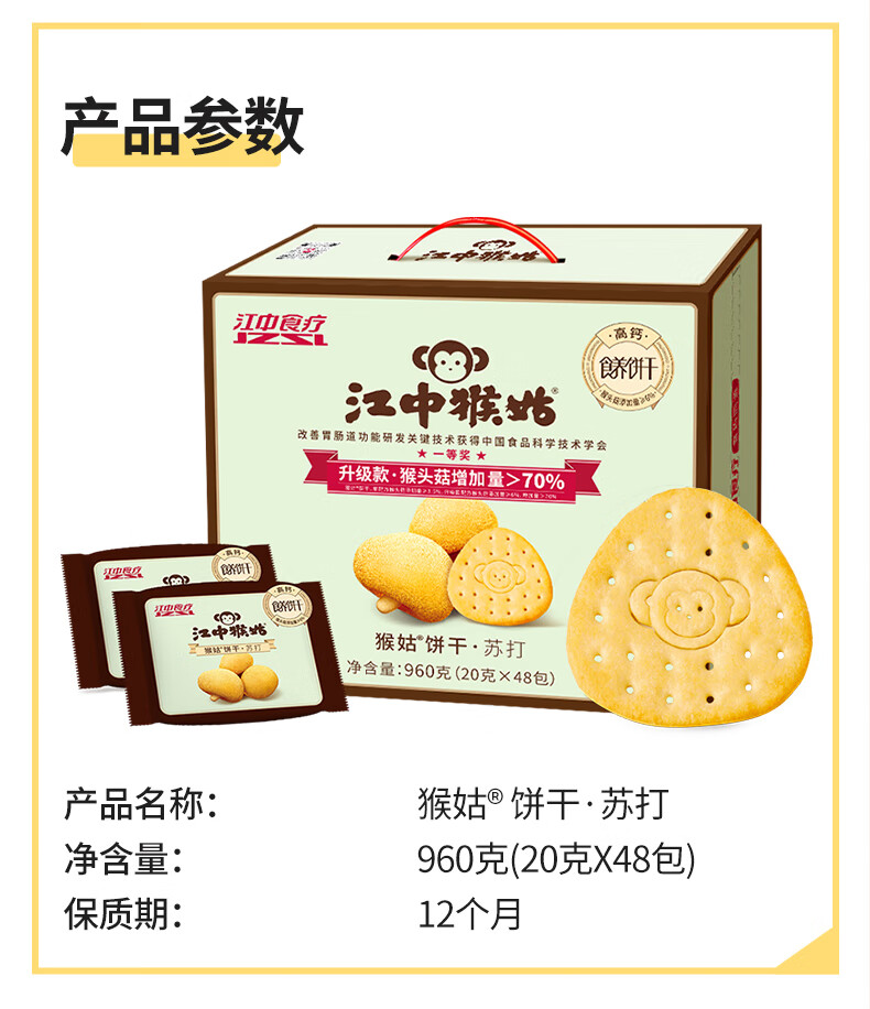 江中猴姑养胃苏打猴头菇饼干礼盒咸味中和胃酸中老年人孕妇休闲零食960g