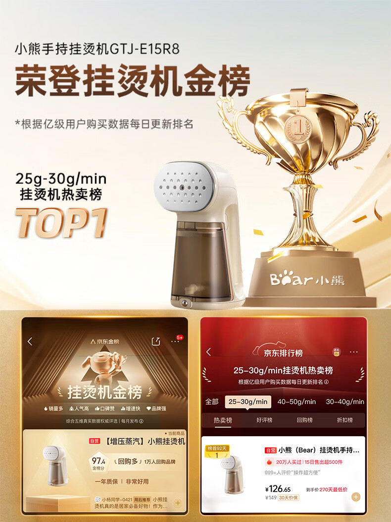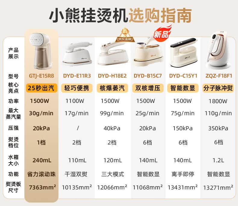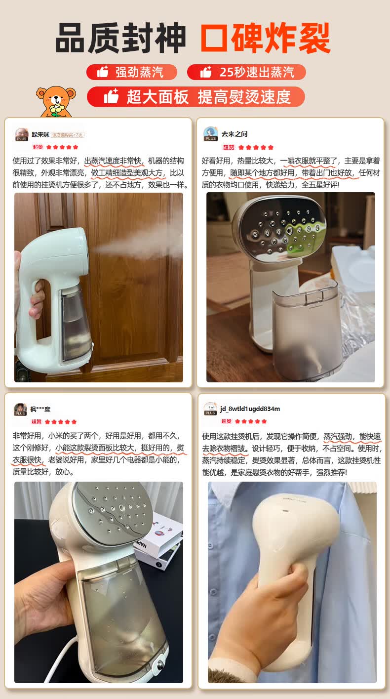 小熊(Bear)手持挂烫机30g/min大蒸汽240mL水箱熨烫机家用便携电熨斗除菌熨斗旅游出差小型GTJ-E15R8