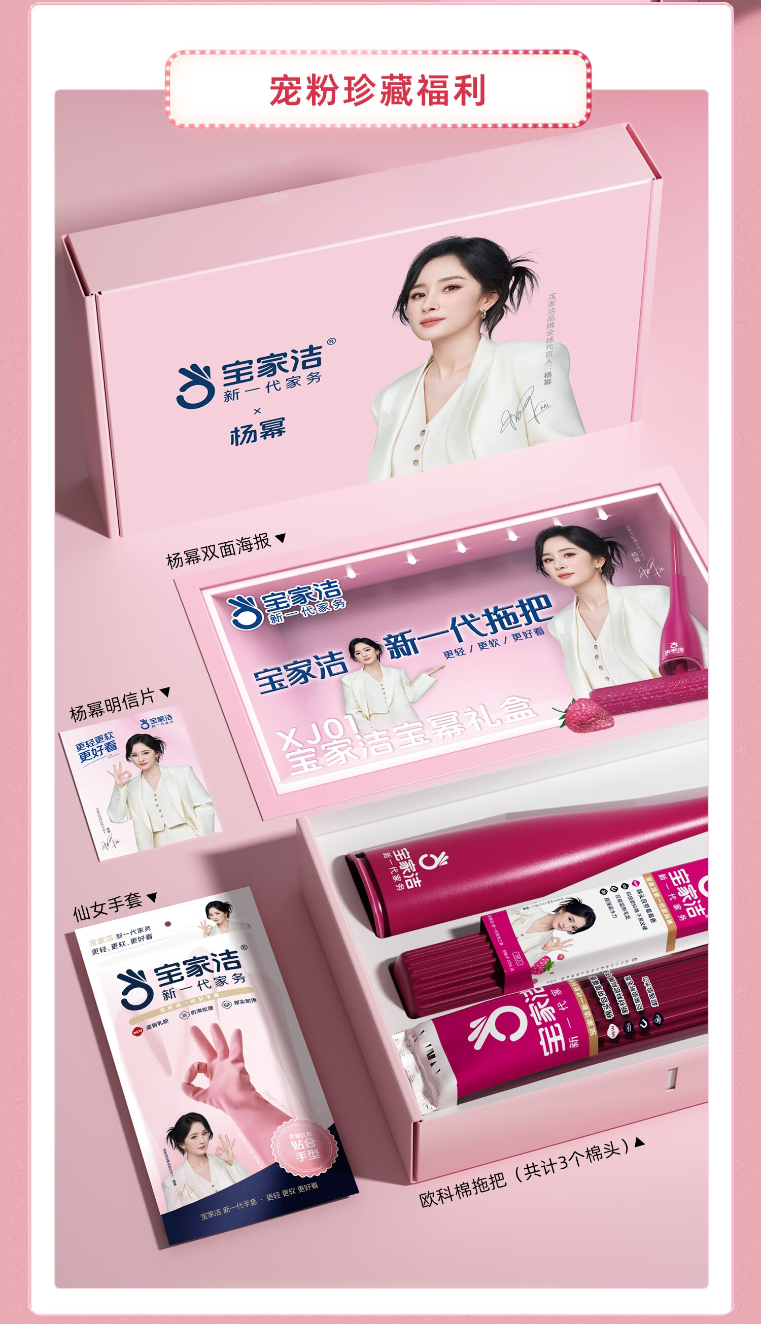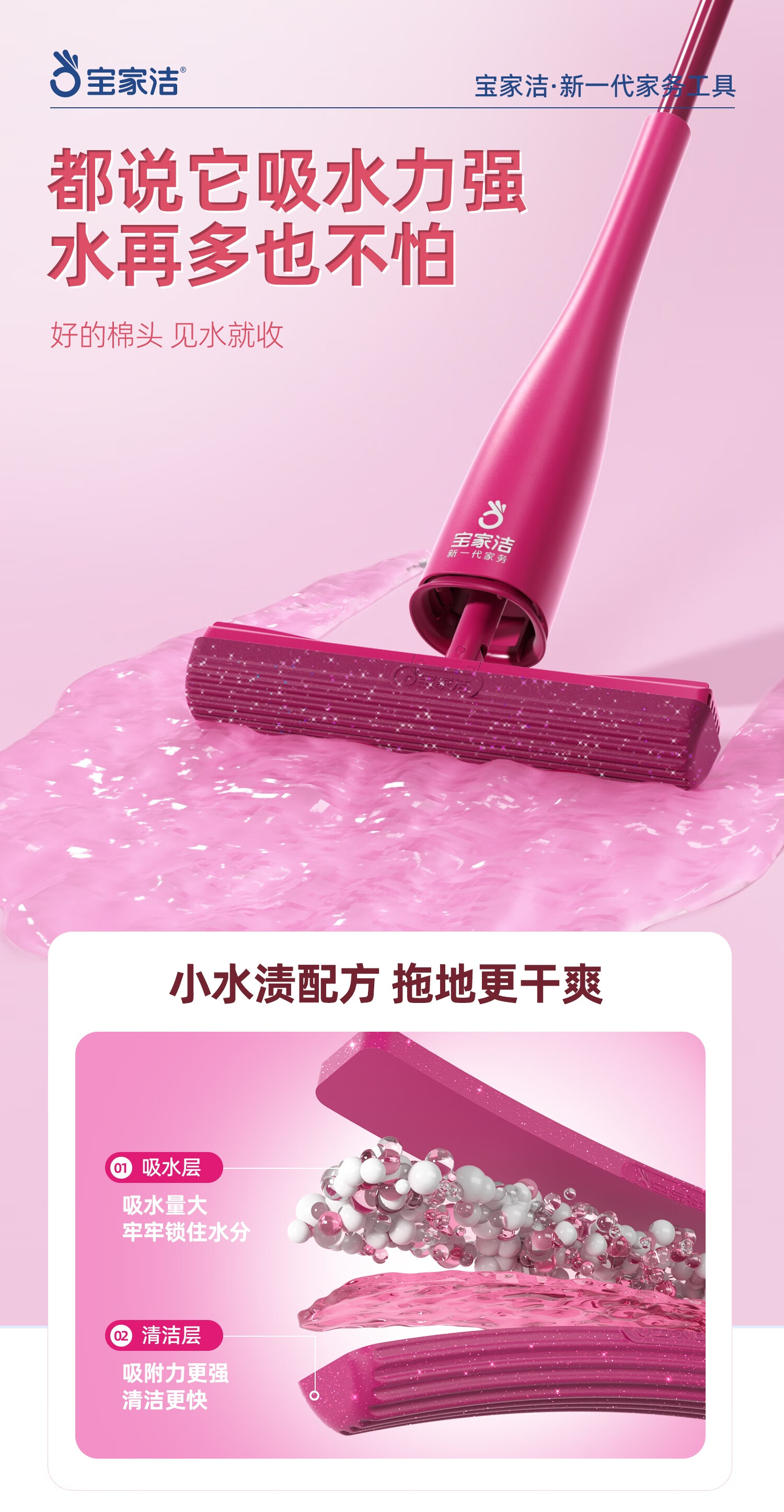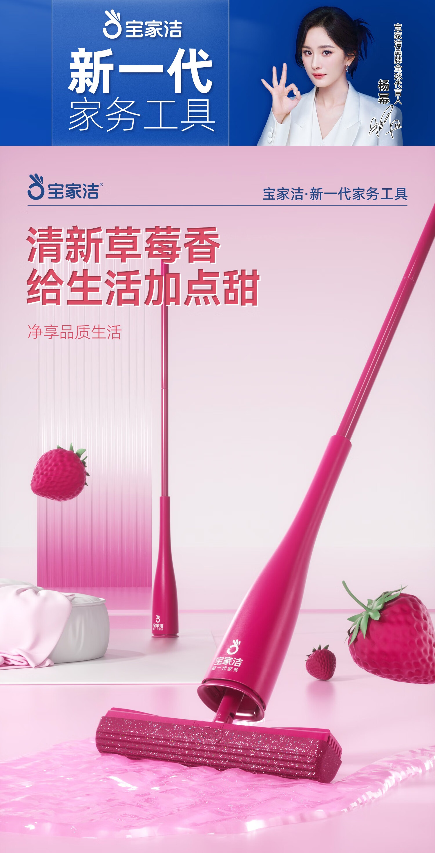 宝家洁胶棉拖把32cm配3草莓香欧科棉头【杨幂限定礼盒】家用拖把免手洗