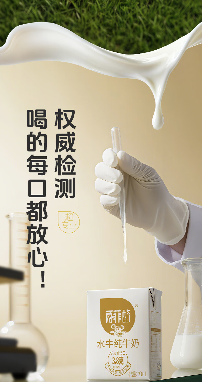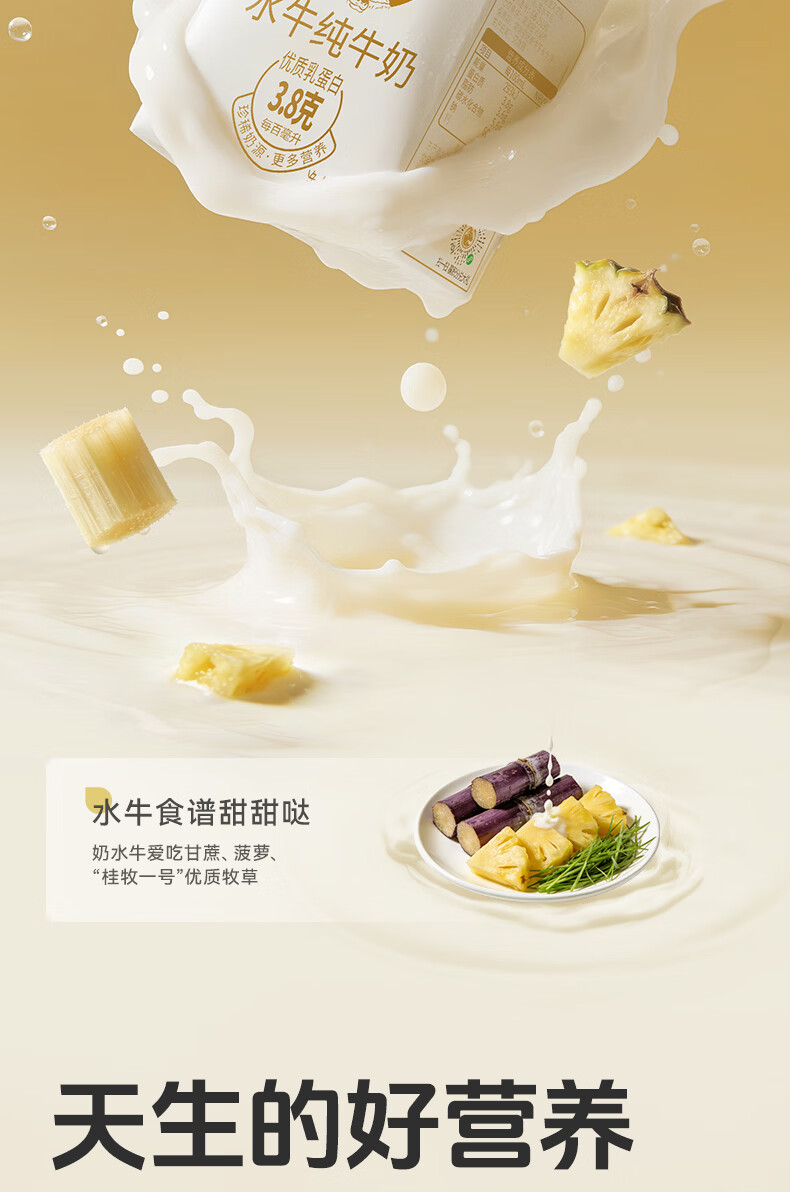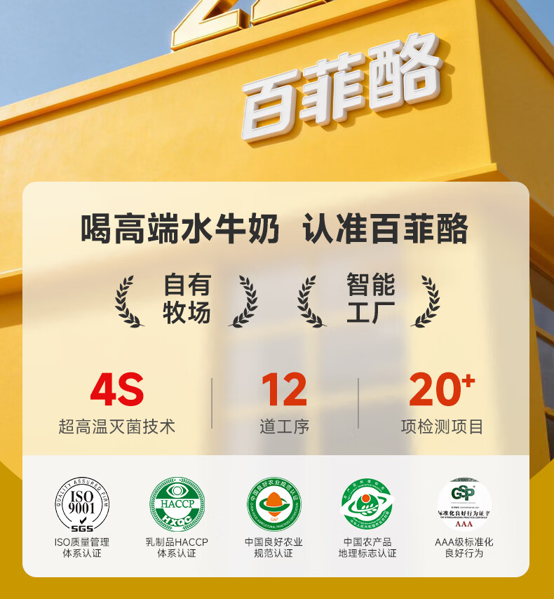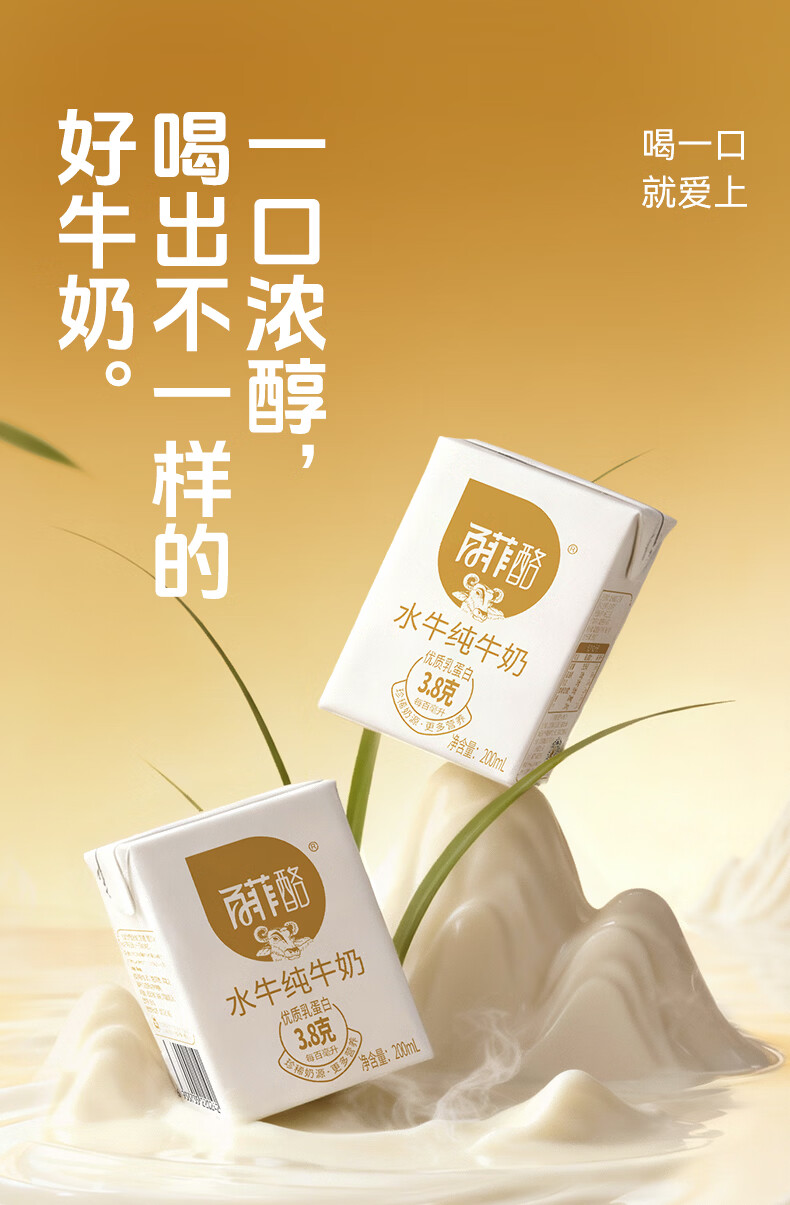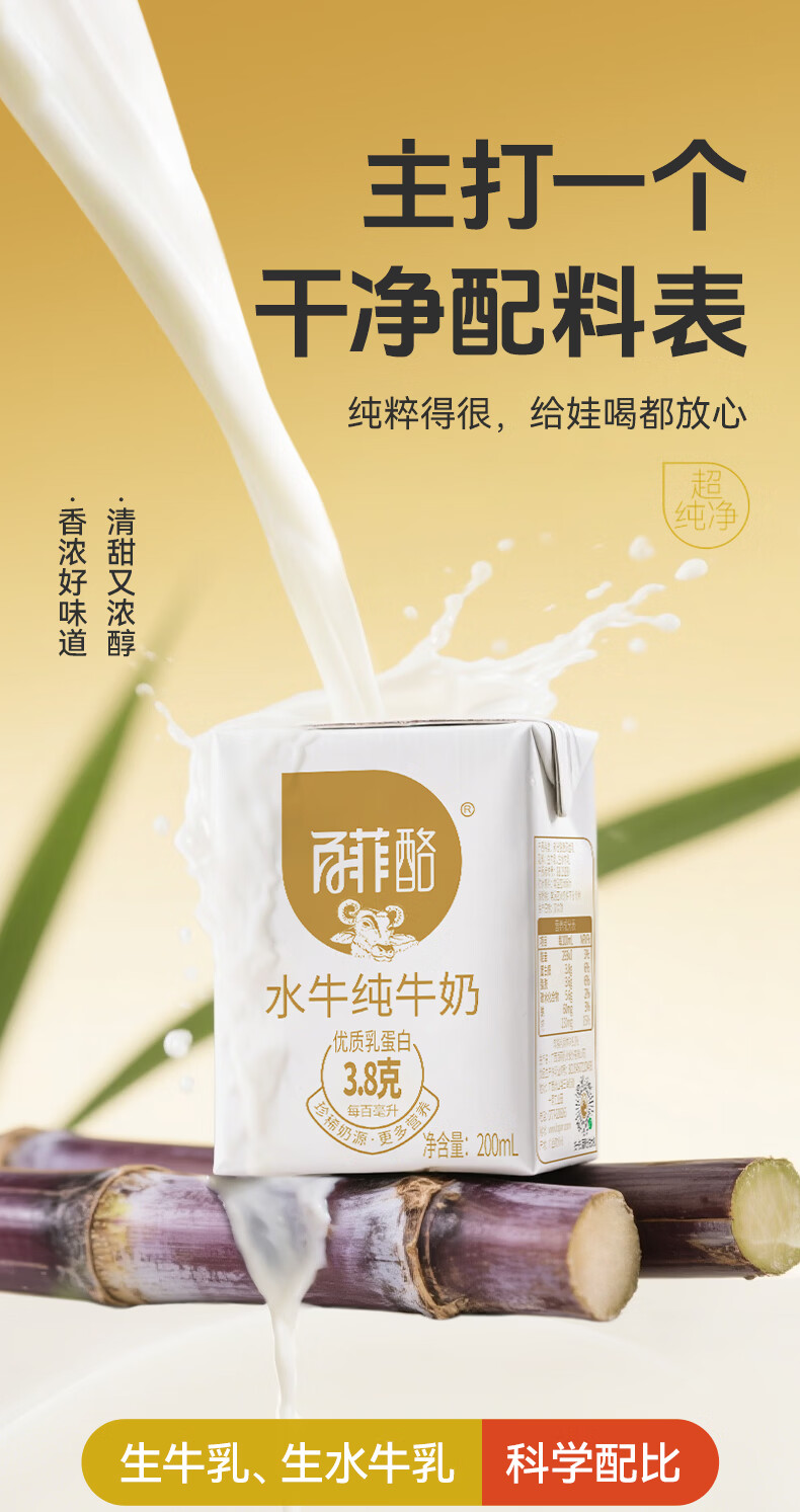 百菲酪水牛纯牛奶3.8g优质乳蛋白130mg高钙200ml*12盒 春节年货送礼盒装