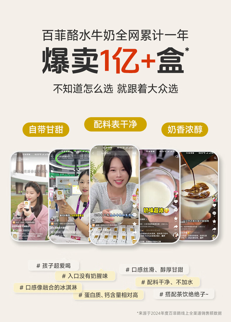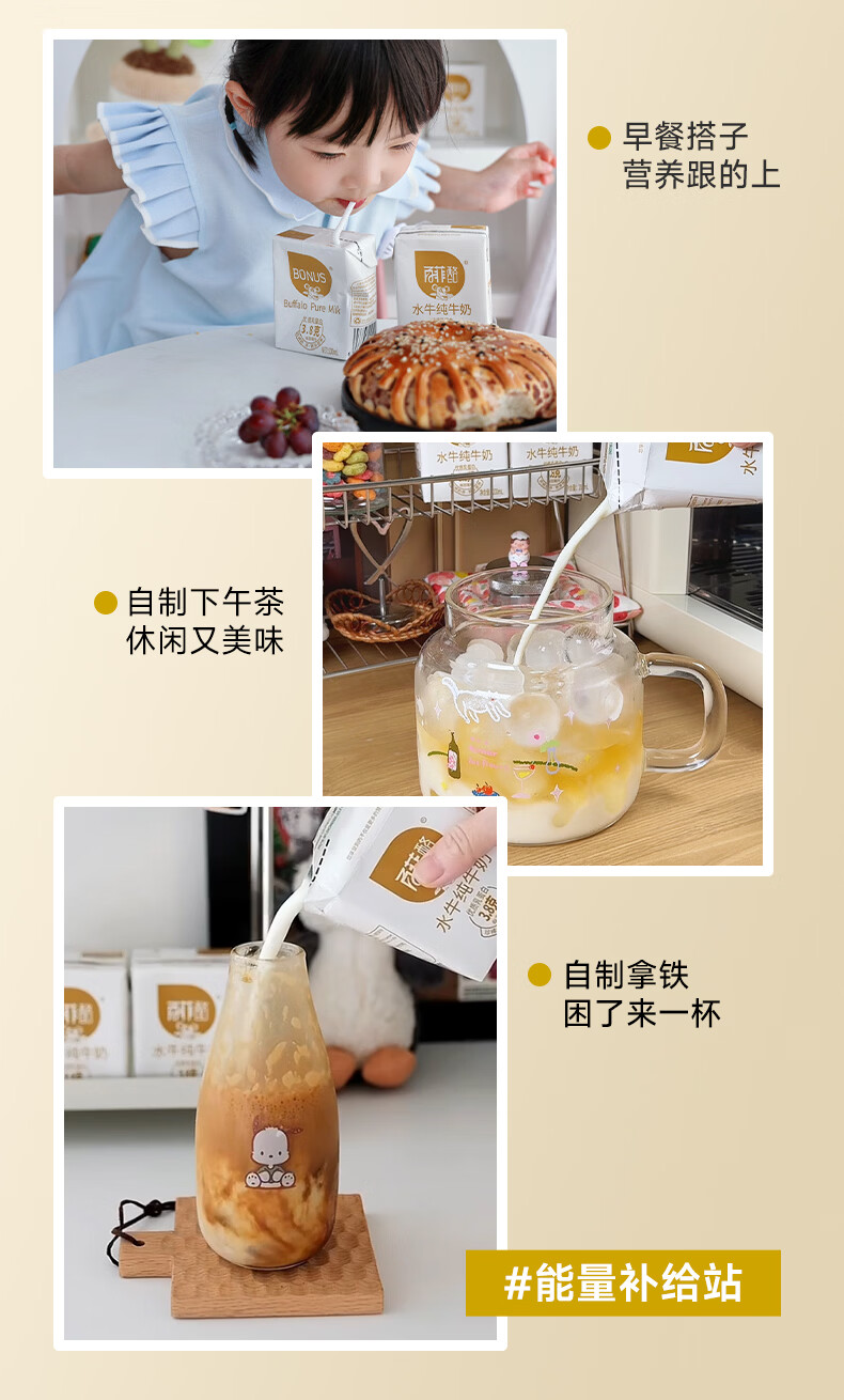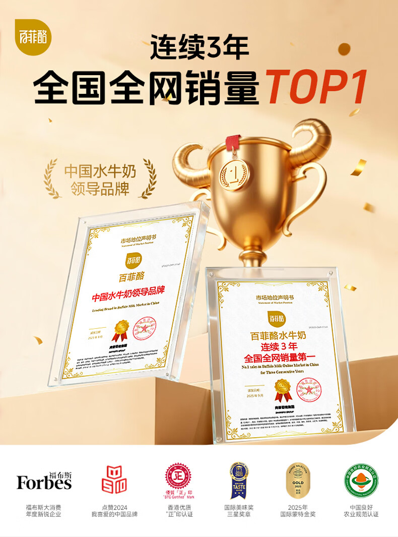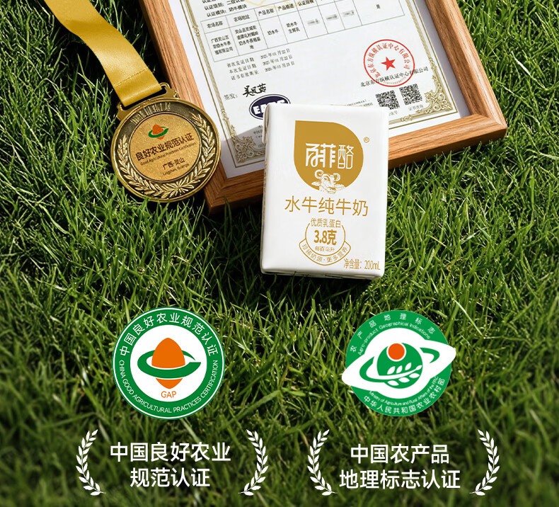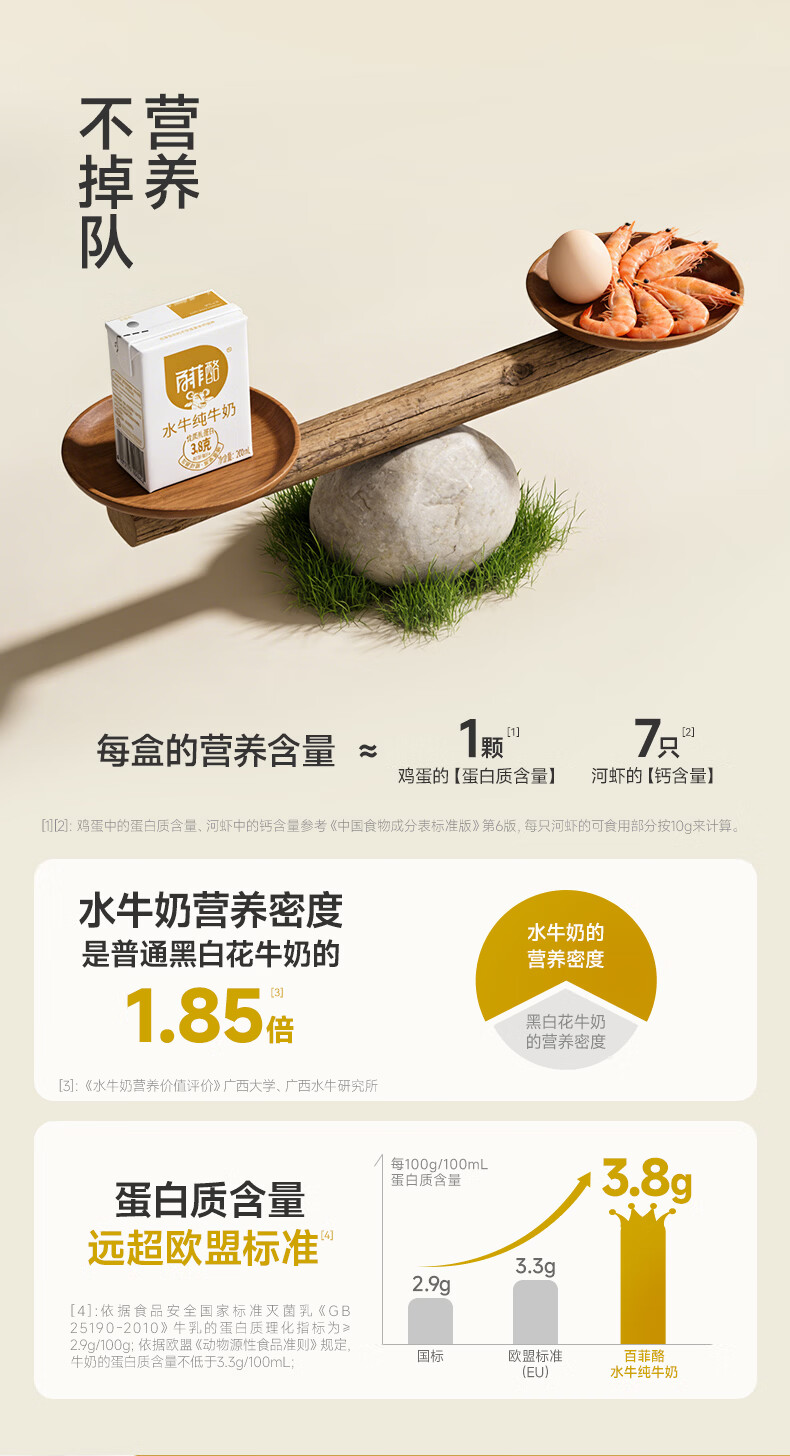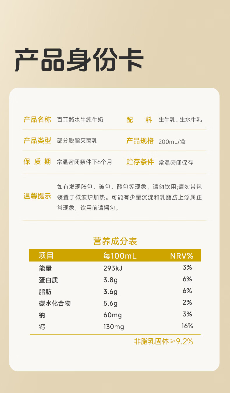 百菲酪水牛纯牛奶3.8g优质乳蛋白130mg高钙200ml*12盒 春节年货送礼盒装