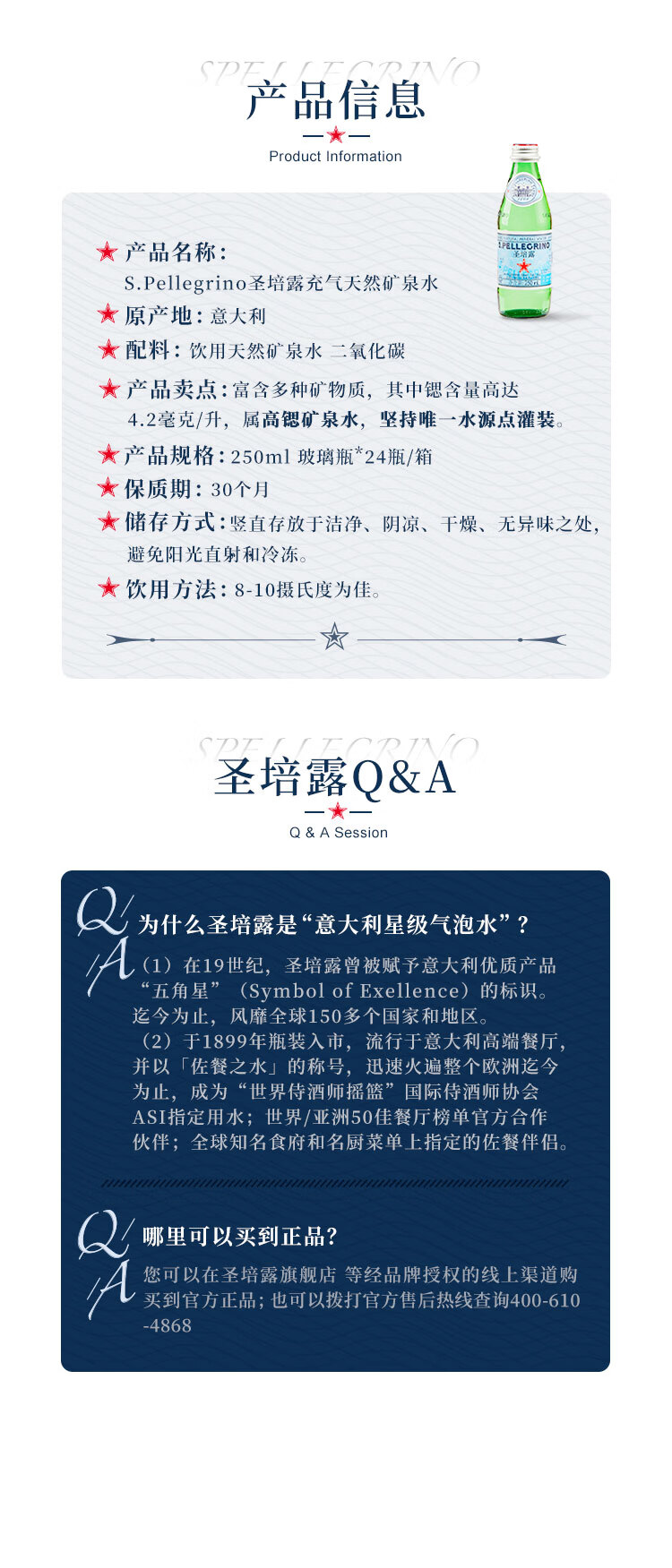 圣培露(S.PELLECRINO)意大利含气天然矿泉水气泡水 饮用水 250ml*24瓶年货礼盒