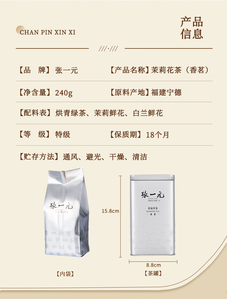 张一元茉莉花茶叶香茗浓香新茶老北京伴手茶礼送礼特级240g罐装热门商品