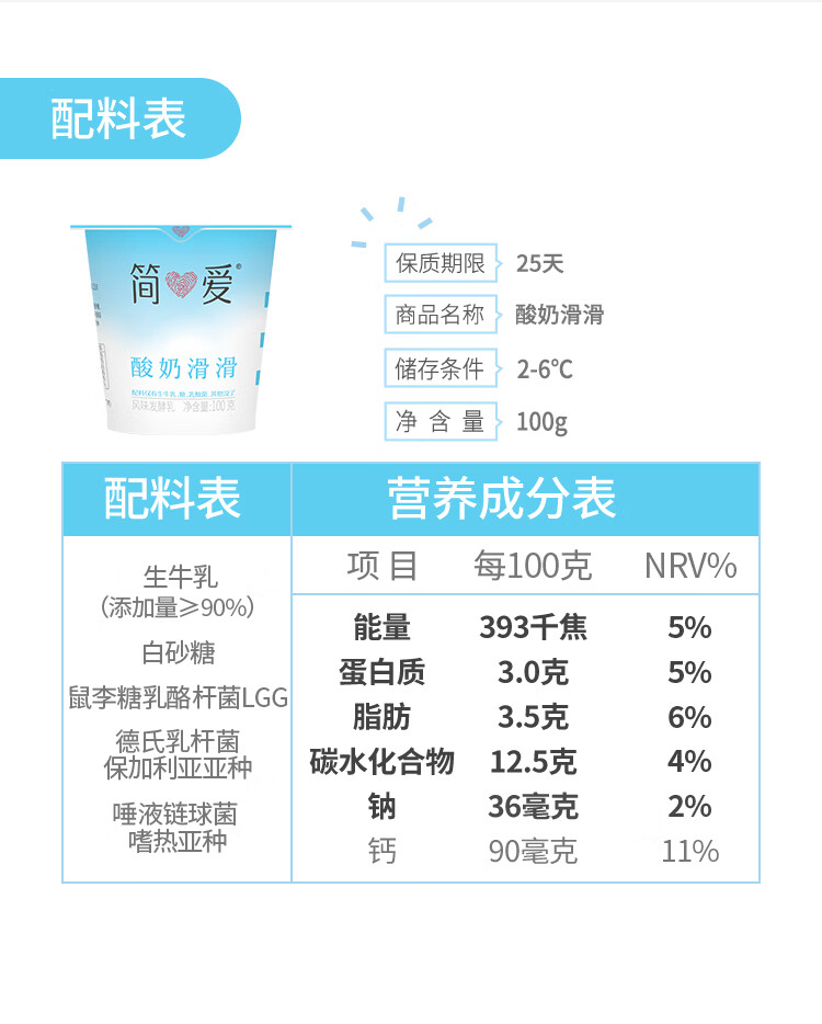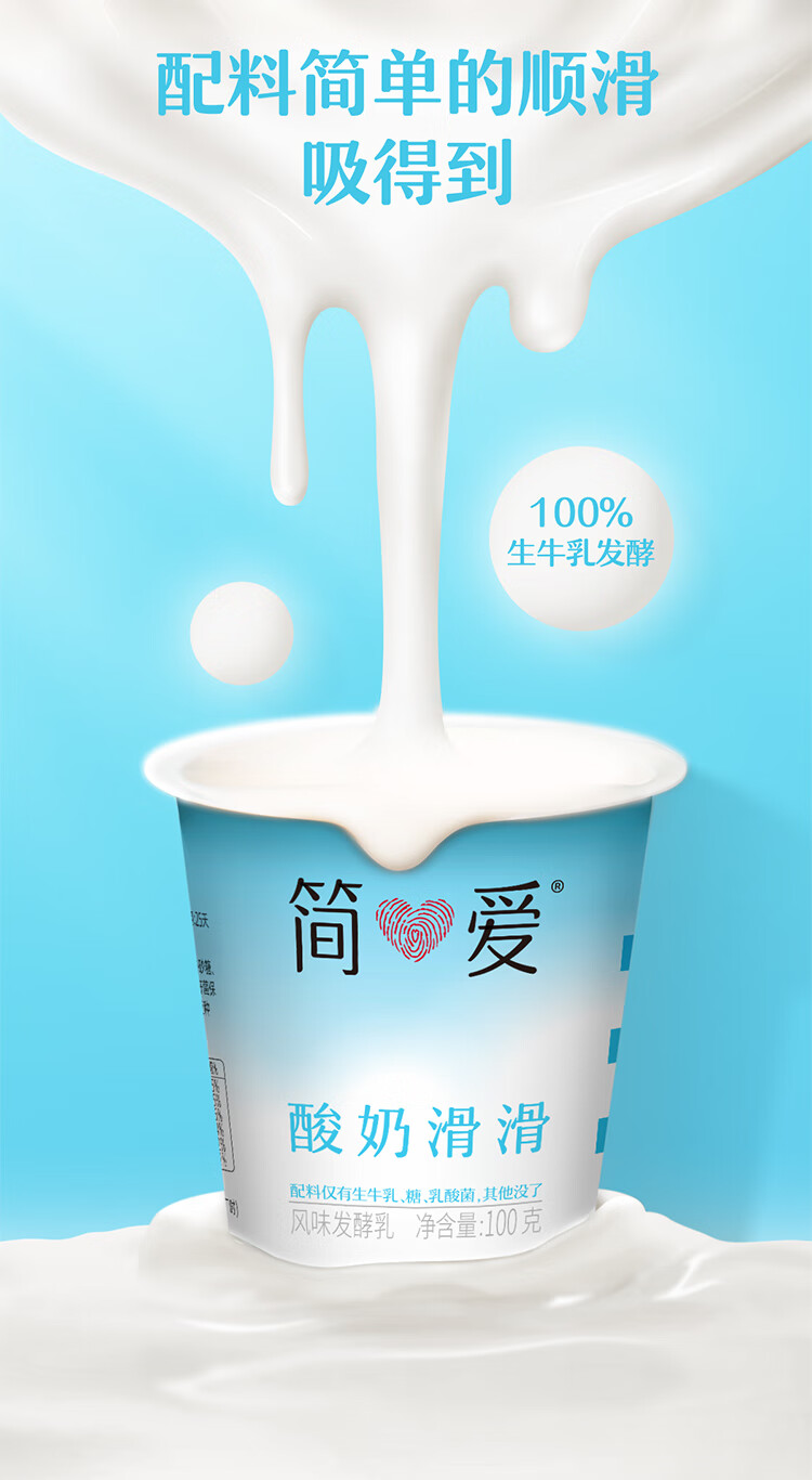 简爱酸奶滑滑酸奶 100g*6杯 生牛乳发酵下午茶风味发酵乳