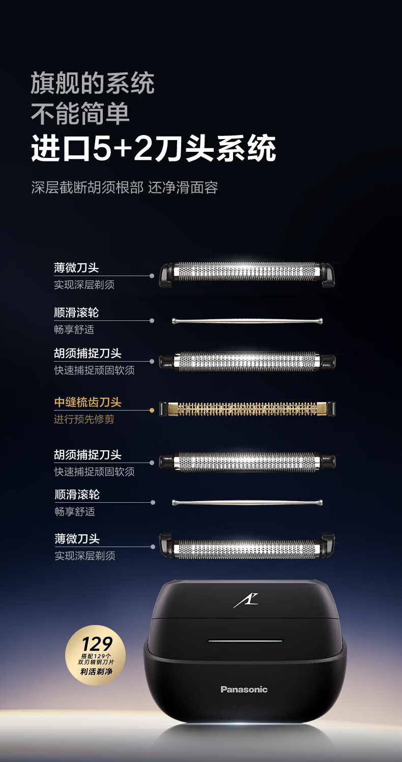 松下(Panasonic)掌IN剃须刀电动剃须刀往复式进口精钢五刀头Type-c刮胡刀便携旗舰剃须刀520送男友生日礼物CM50黑