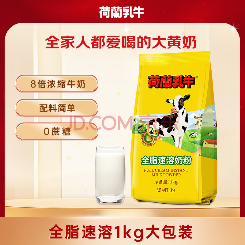 荷兰乳牛速溶奶粉1KG袋 高钙全家全脂成人儿童营养早餐烘焙奶粉