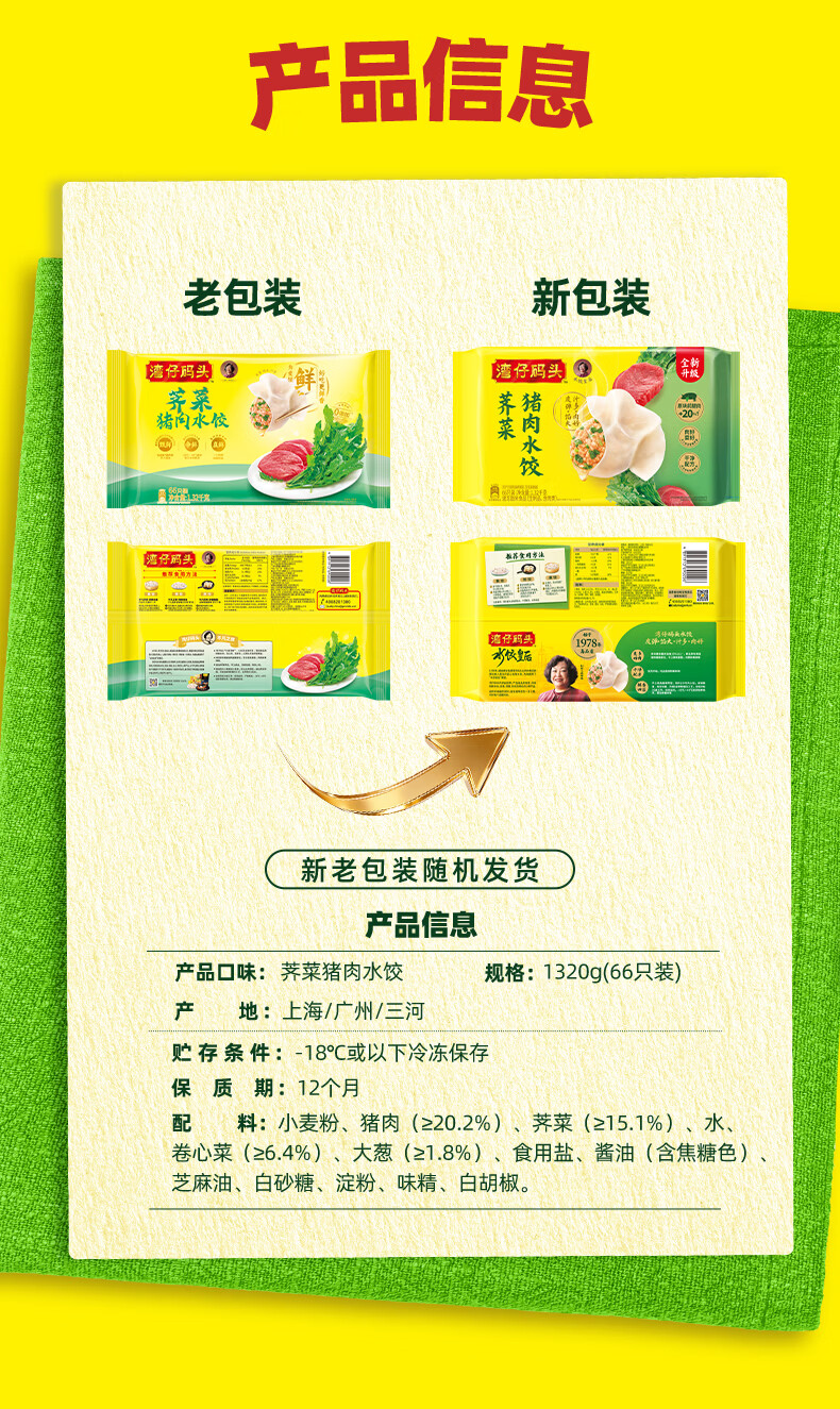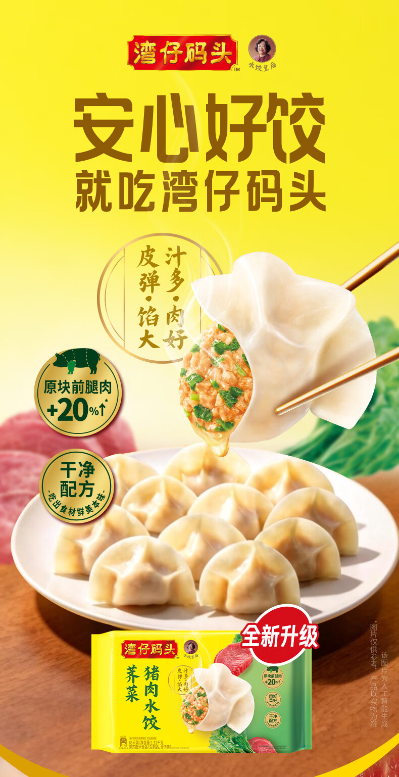湾仔码头荠菜猪肉水饺1320g66只早餐食品速食半成品面点生鲜速冻饺子