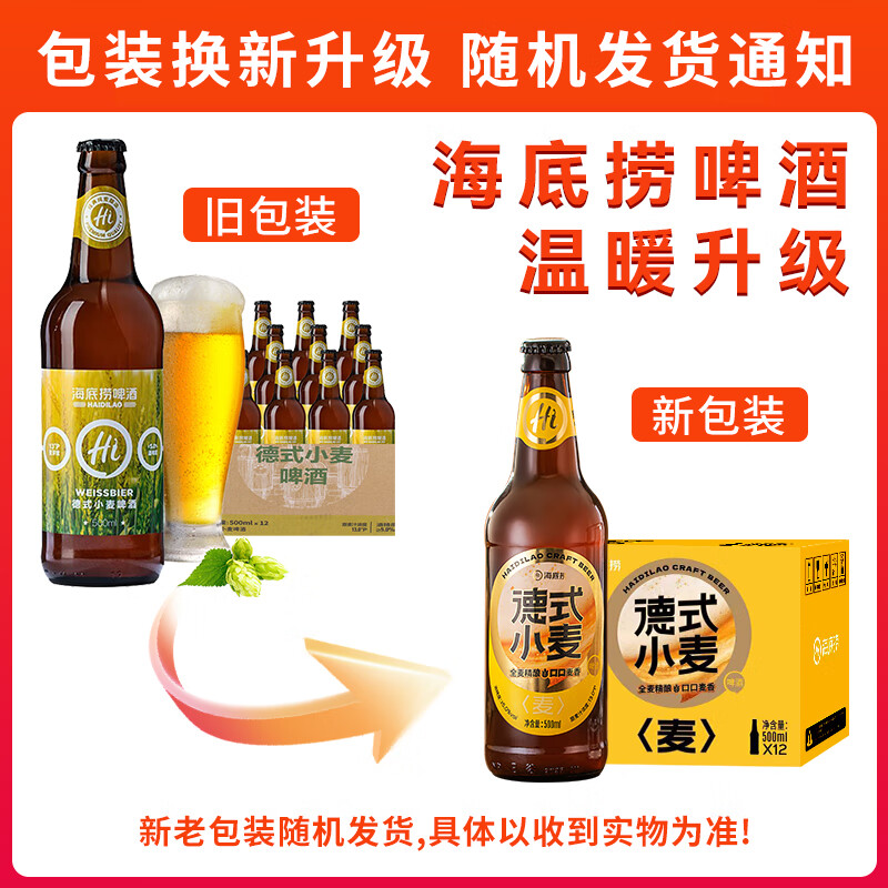 海底捞德式小麦精酿啤酒 500ml*12瓶 热门商品整箱装 喜酒新年年货送礼