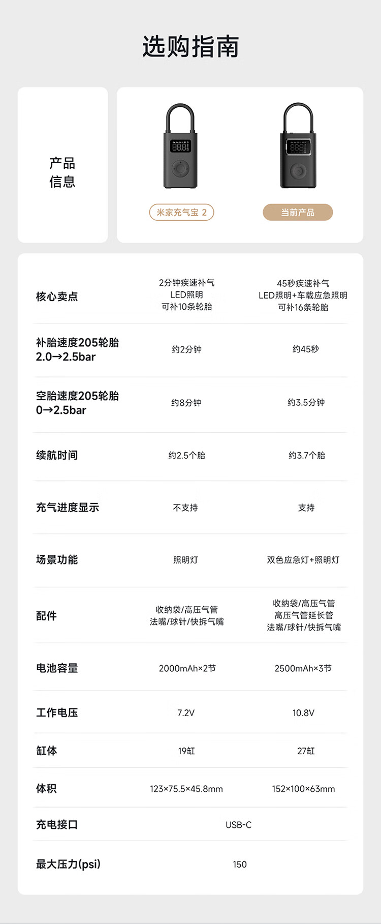 小米充气宝2Pro车载充气泵汽车轮胎打气泵大功率公路车电动充气宝测压