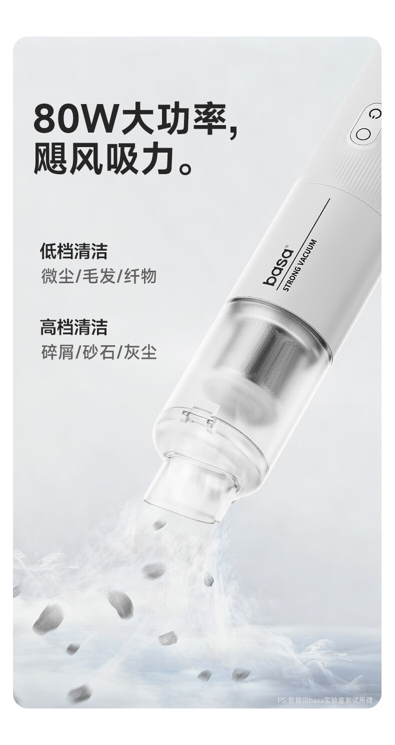basa车载吸尘器 手持小型无线大吸力强力吹吸抽充一体机汽车用家用桌面清洁 多功能大功率长续航8000Pa